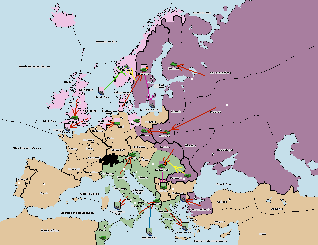 The fleet at Bulgaria (South Coast) move to Constantinople.