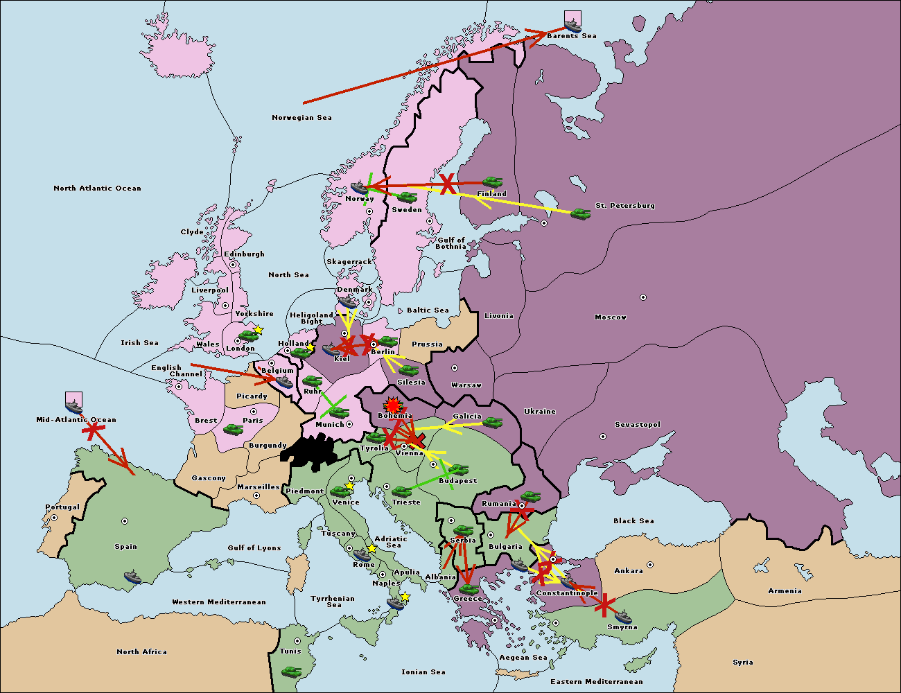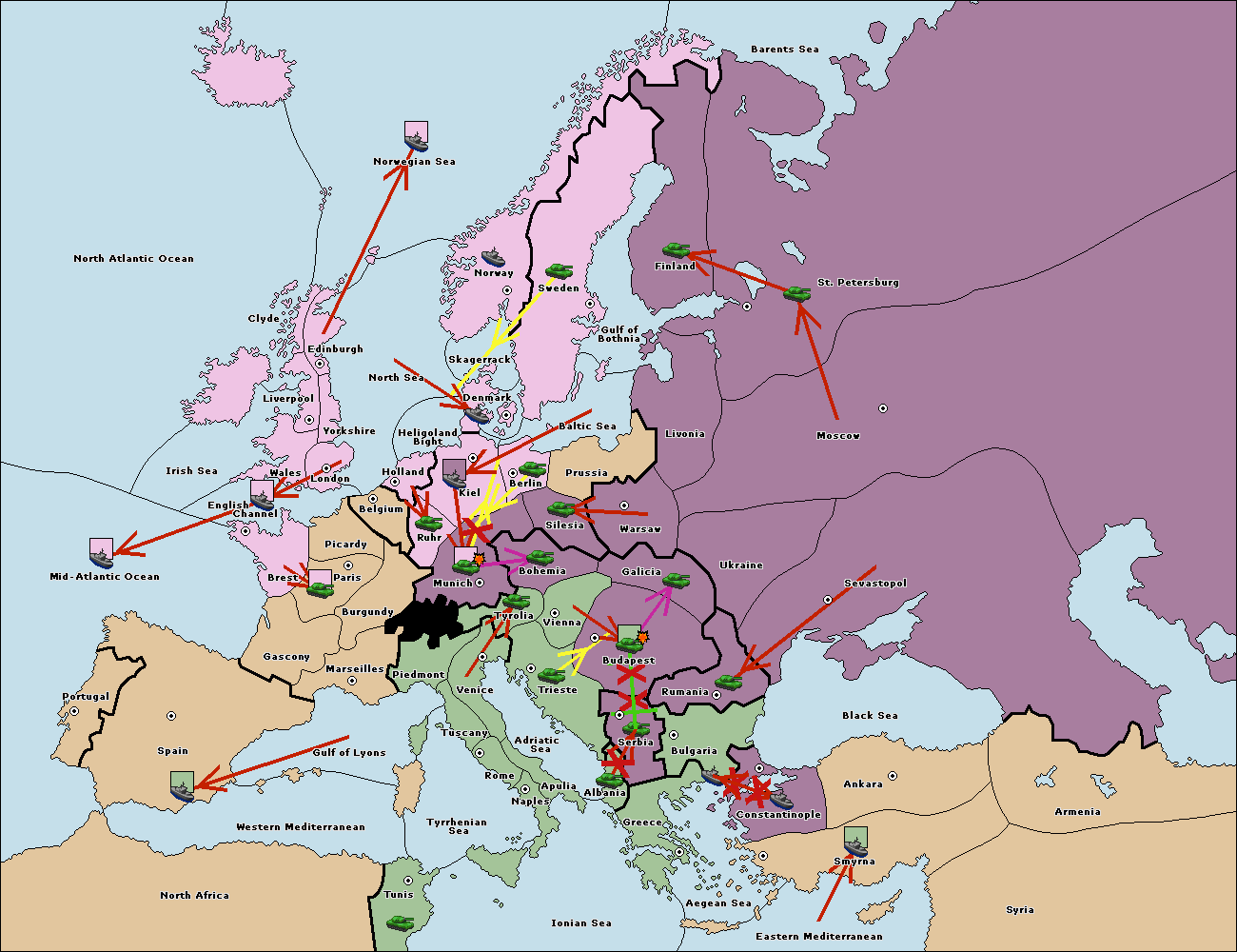 The fleet at Bulgaria (South Coast) support move to Constantinople from Smyrna.