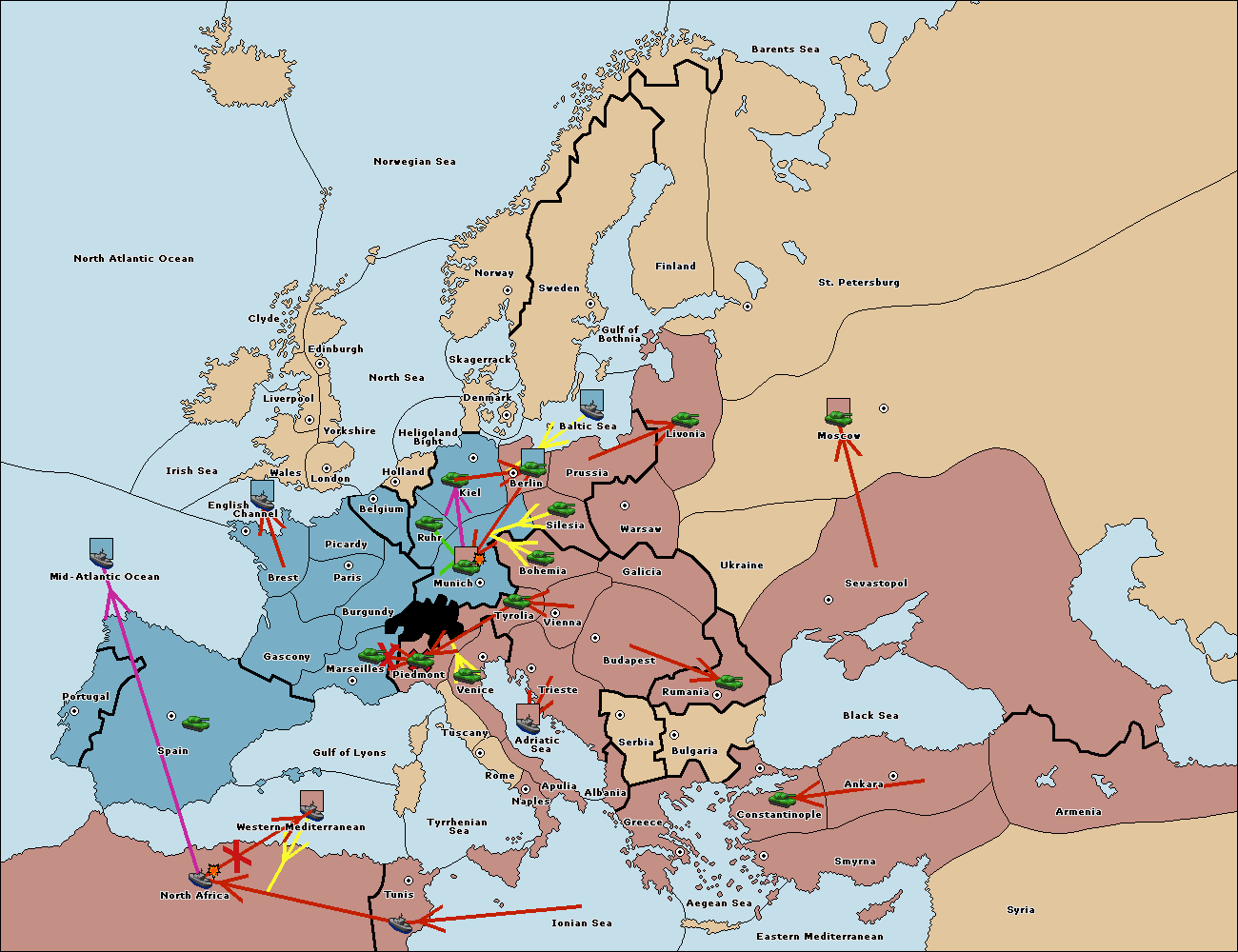 The fleet at Mid-Atlantic Ocean move to Western Mediterranean.