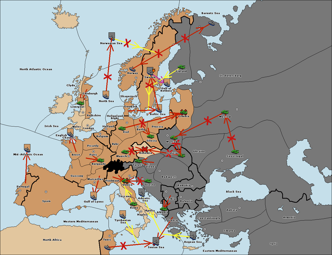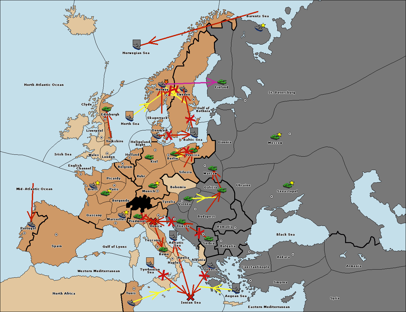 The fleet at Prussia support move to Baltic Sea from Gulf of Bothnia.