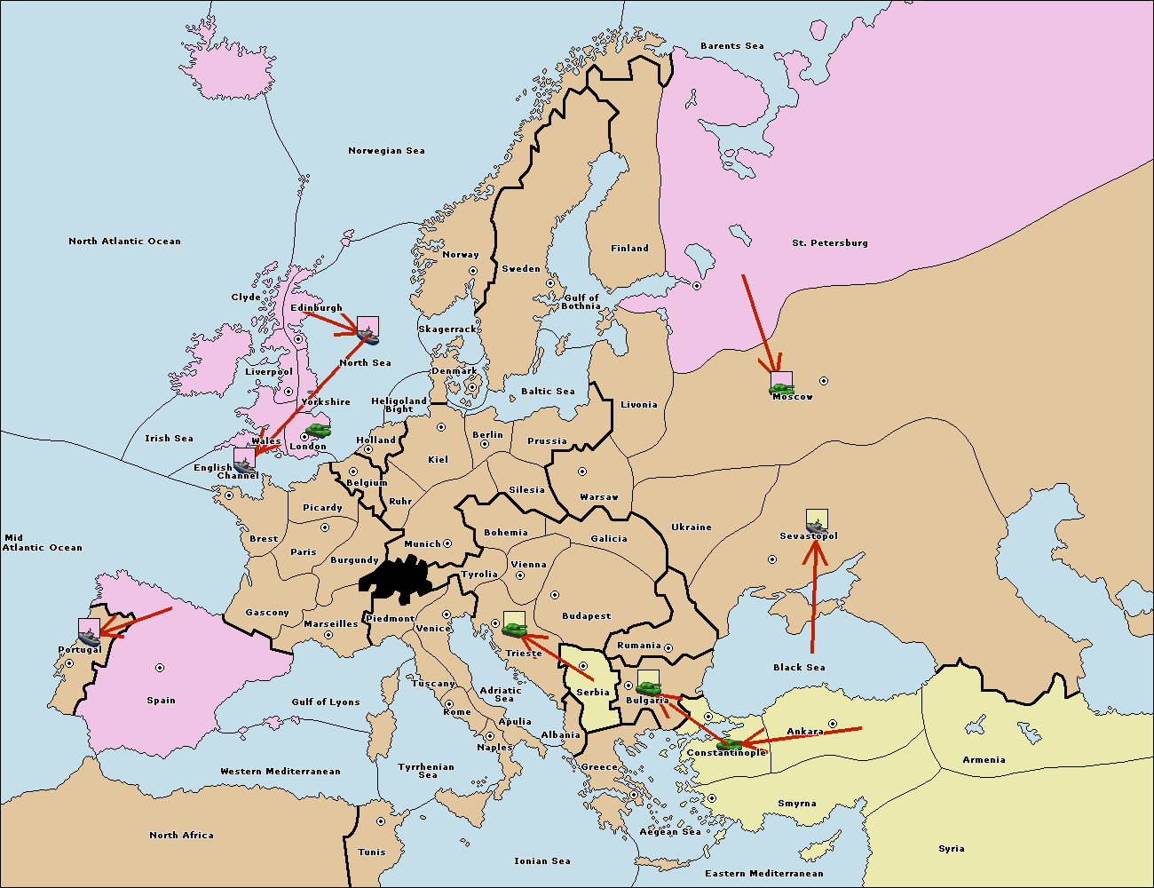The fleet at Mid-Atlantic Ocean move to Western Mediterranean.