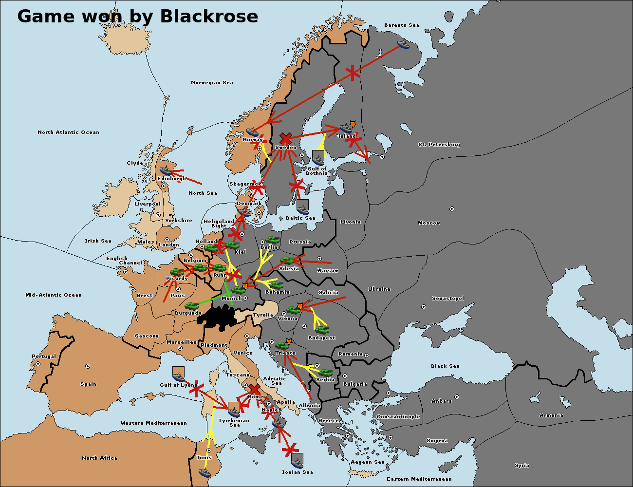 The fleet at Gulf of Lyons move to Tyrrhenian Sea.