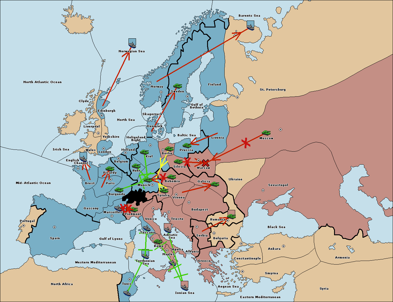 The army at Kiel support move to Munich from Tyrolia.