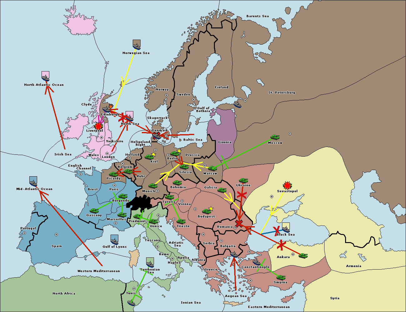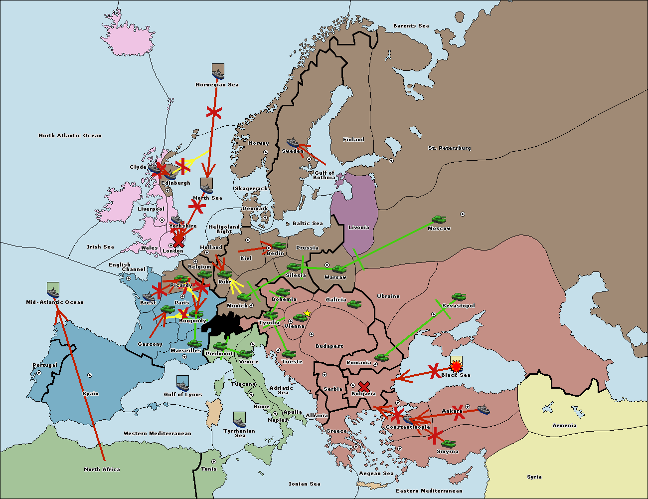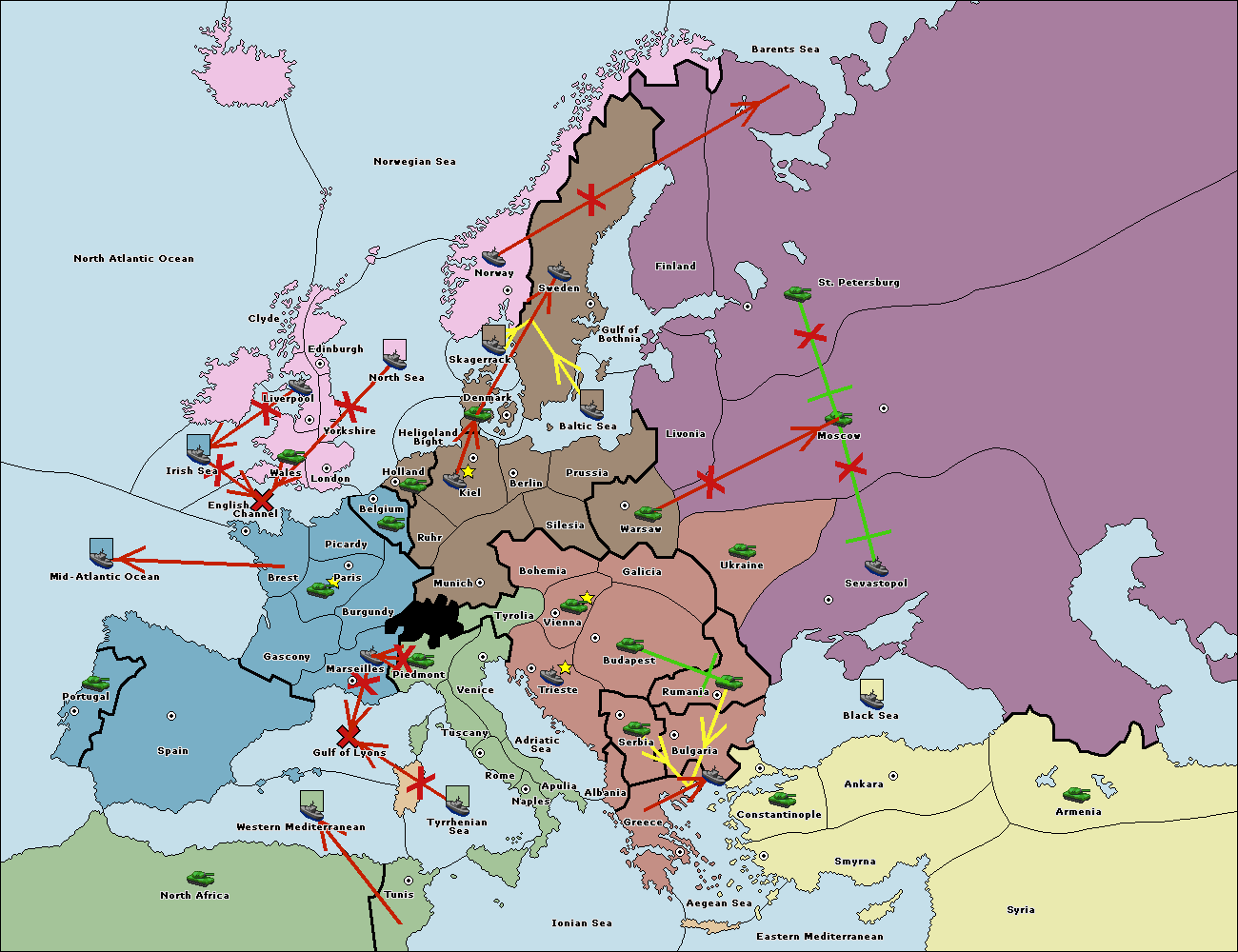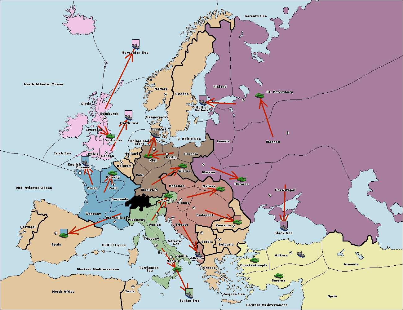 The fleet at Gulf of Bothnia move to St. Petersburg (South Coast).