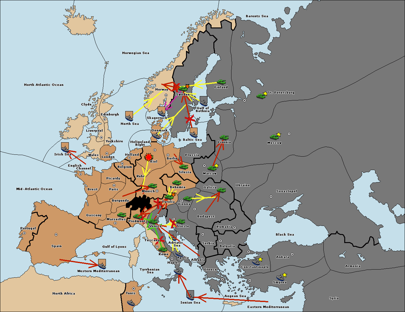 The fleet at Bulgaria (South Coast) move to Greece.