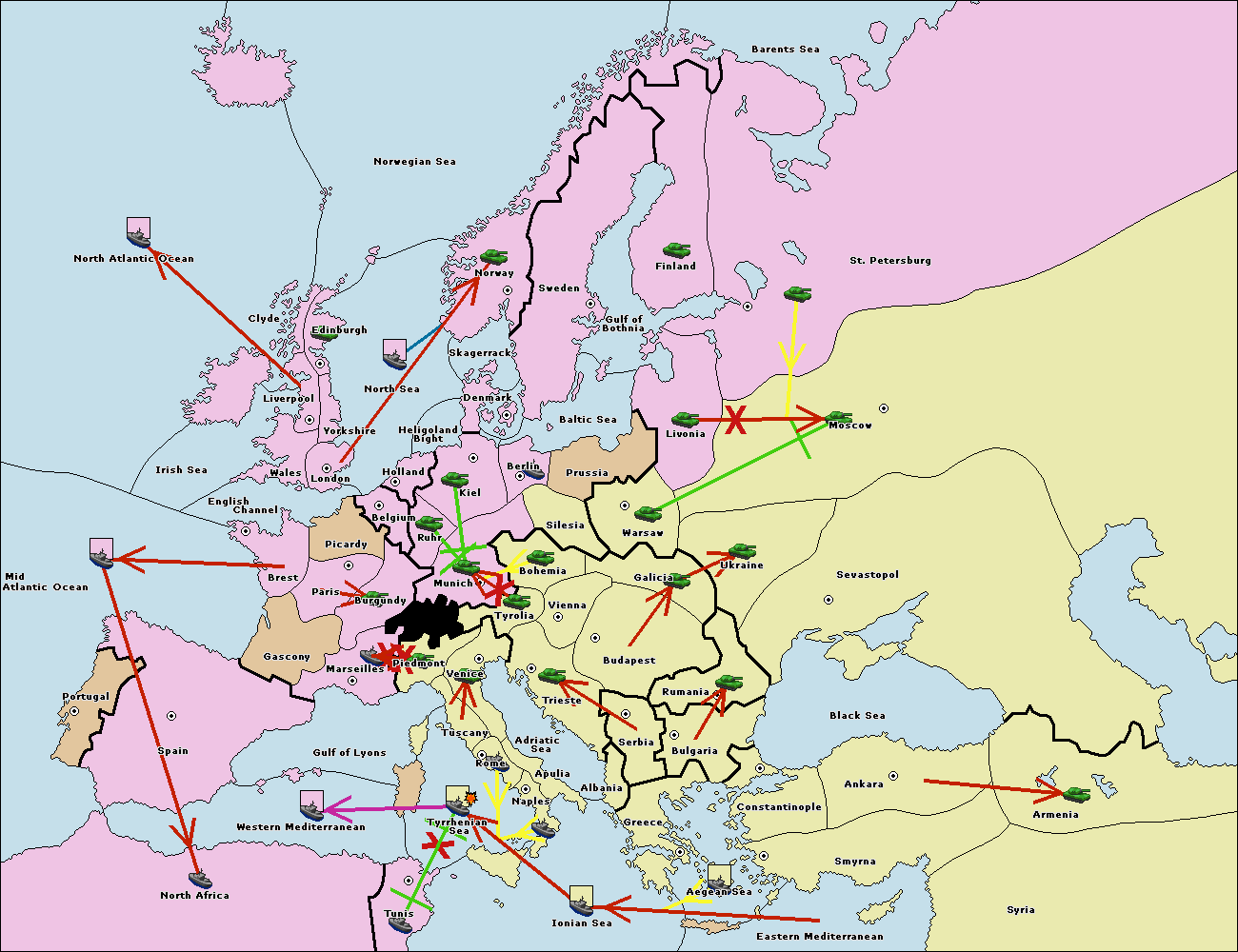 The fleet at Mid-Atlantic Ocean move to Western Mediterranean.