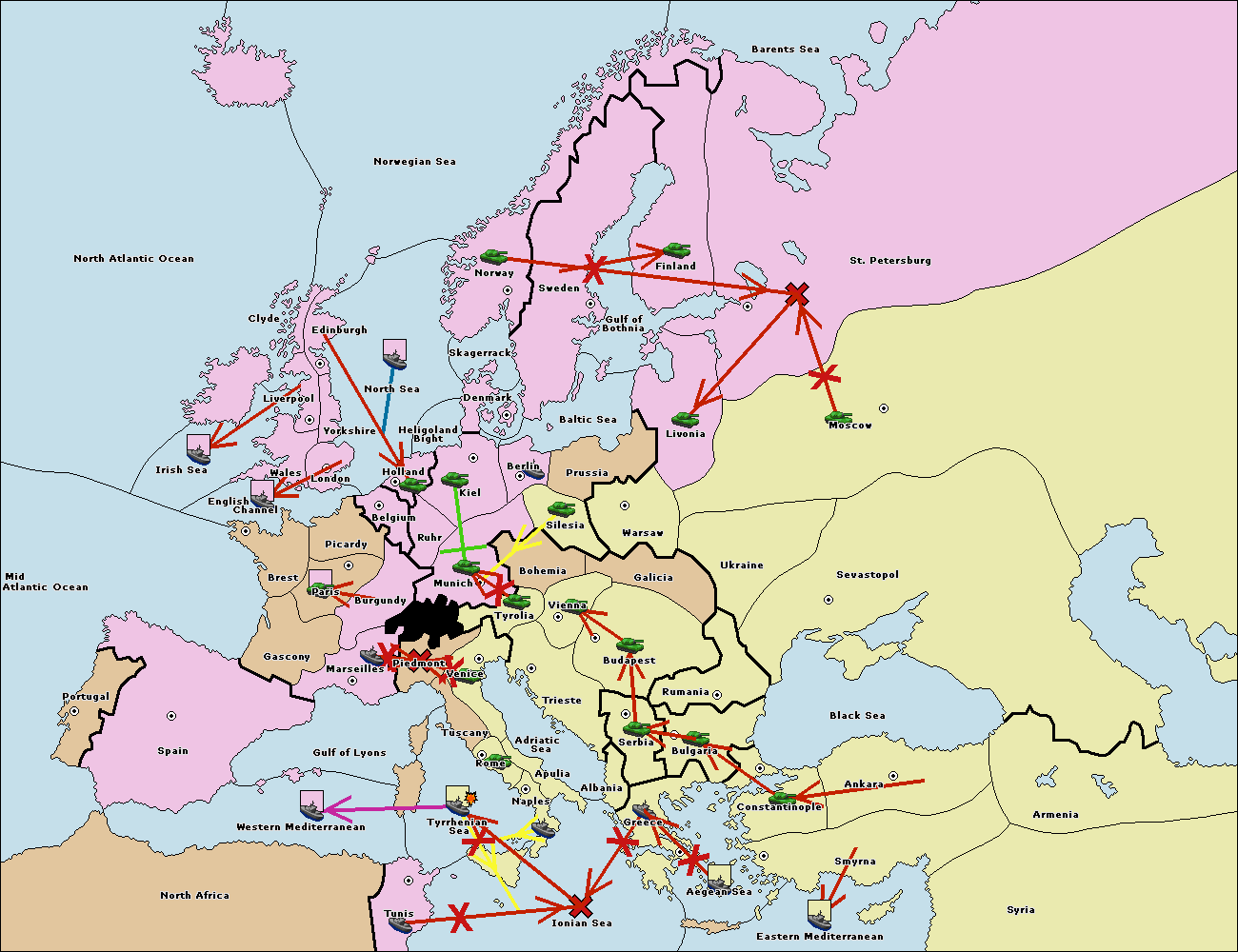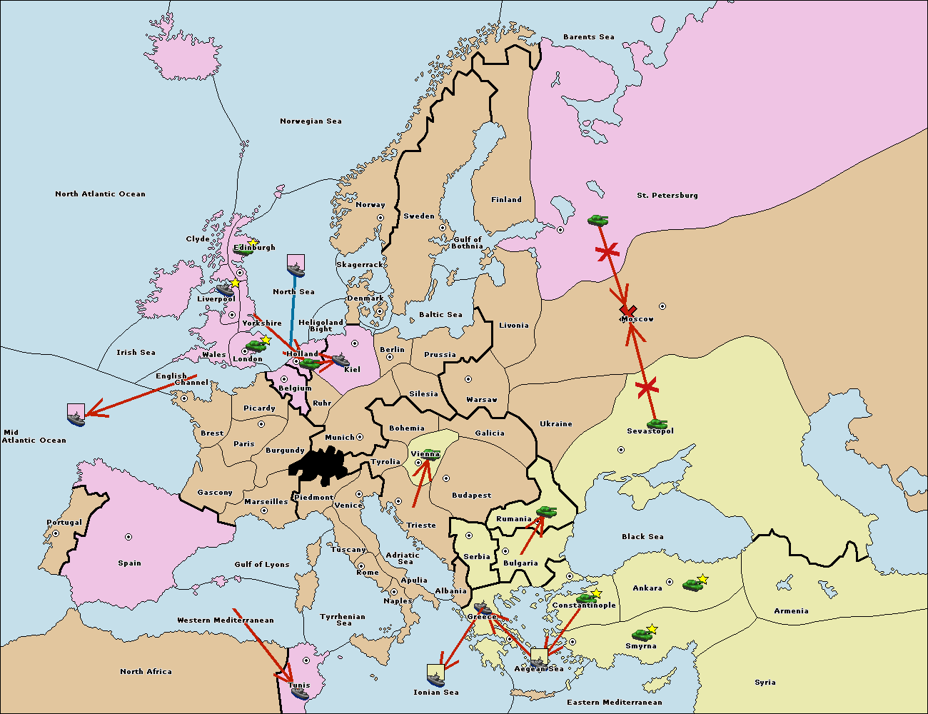 The fleet at Bulgaria (South Coast) move to Greece.