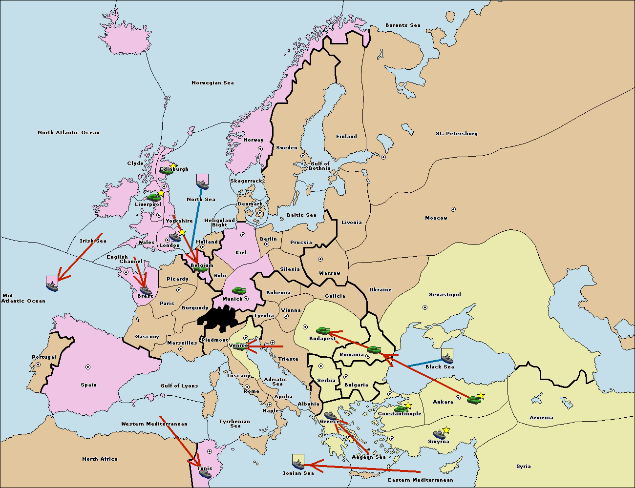 The fleet at Mid-Atlantic Ocean move to Western Mediterranean.