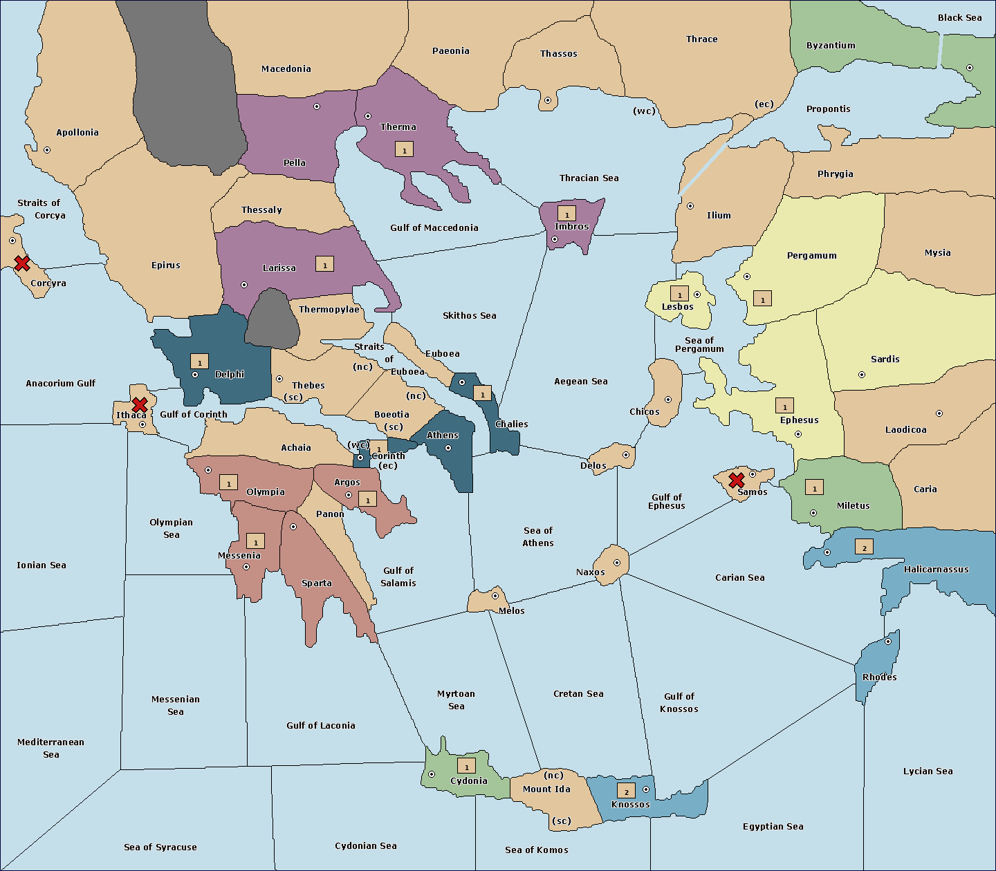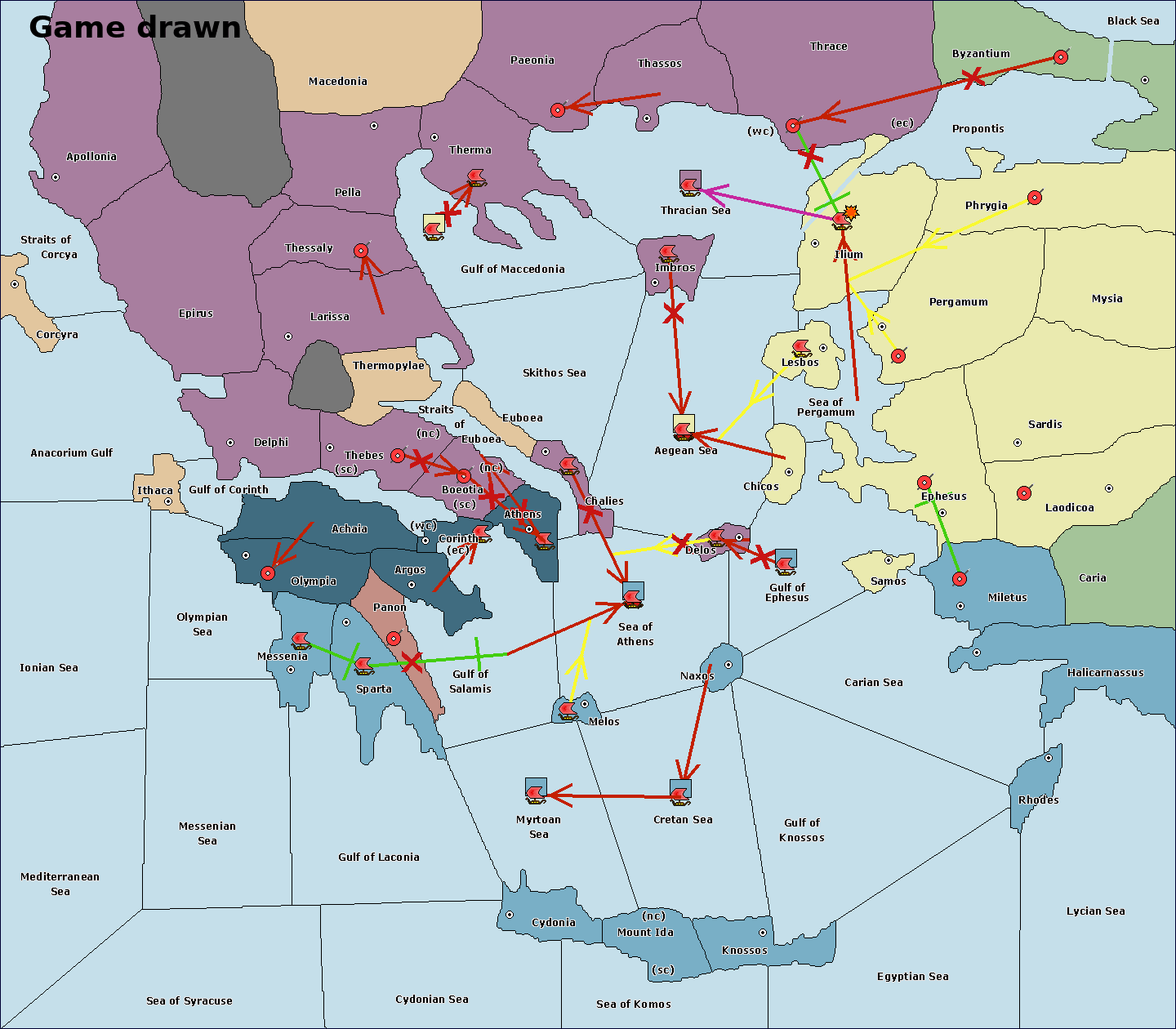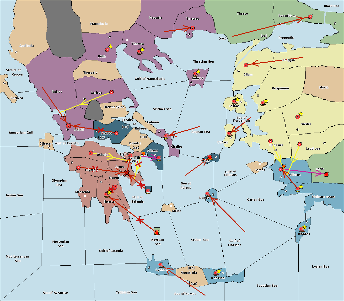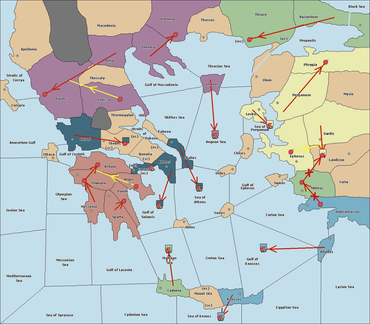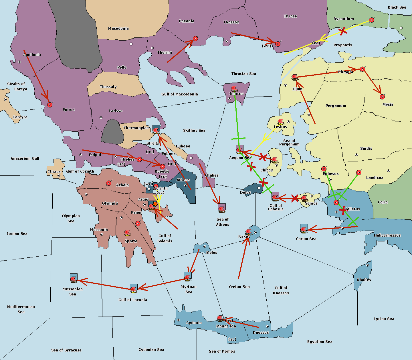The fleet at Cydonia move to Myrtoan Sea.