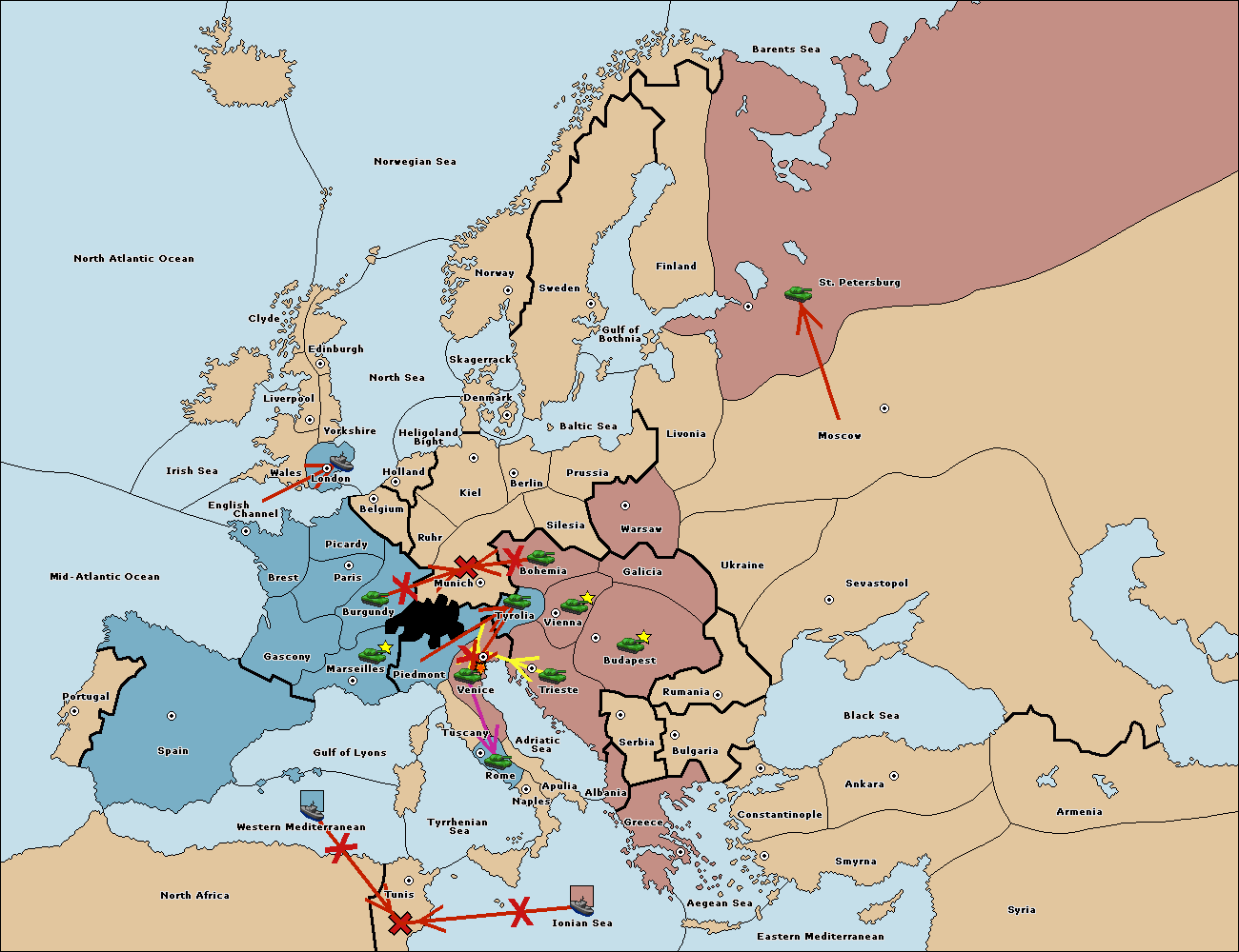 The fleet at Spain (South Coast) move to Western Mediterranean.