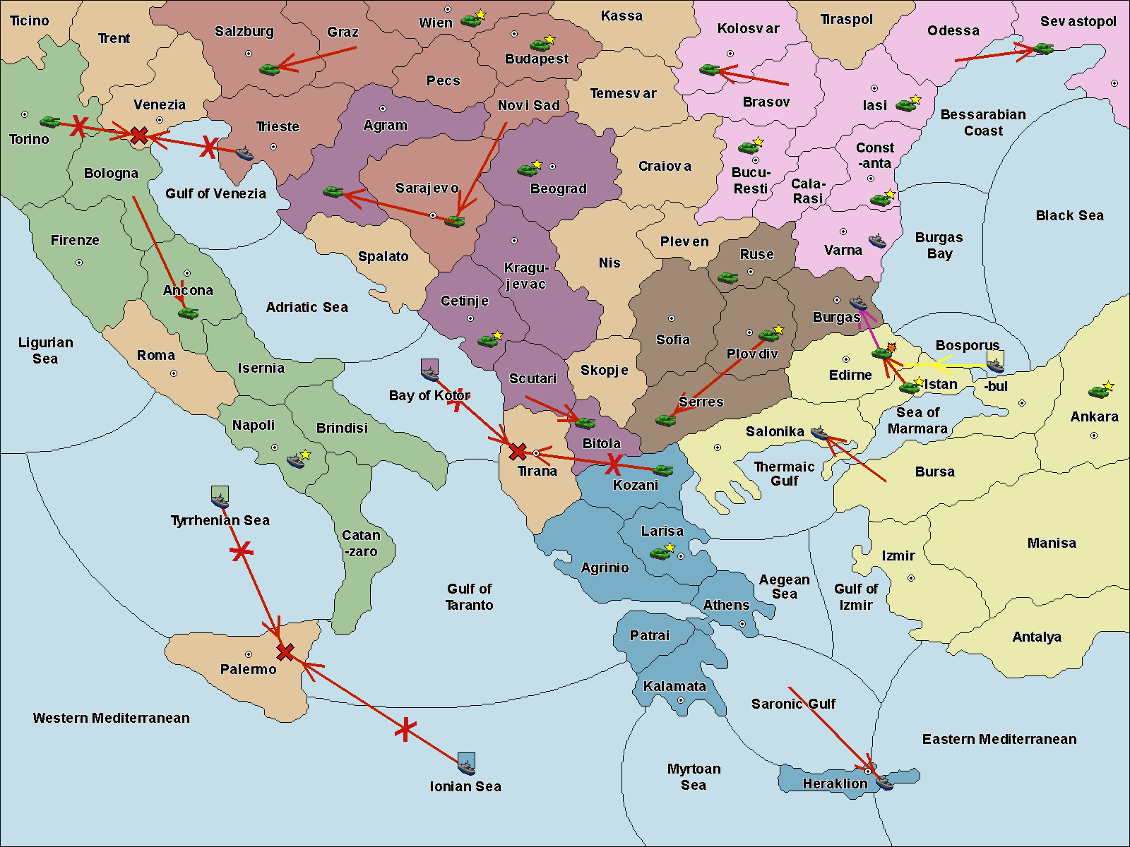 Balkans 1860, Очки за центры, Как в правилах, Анонимная, Скрытое голосование за ничью