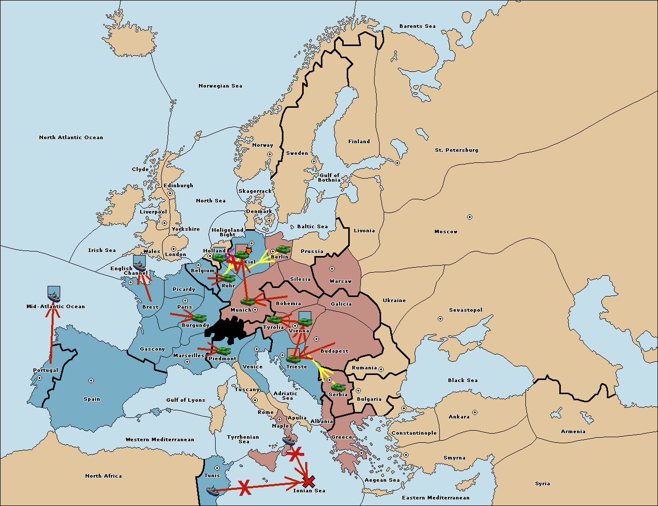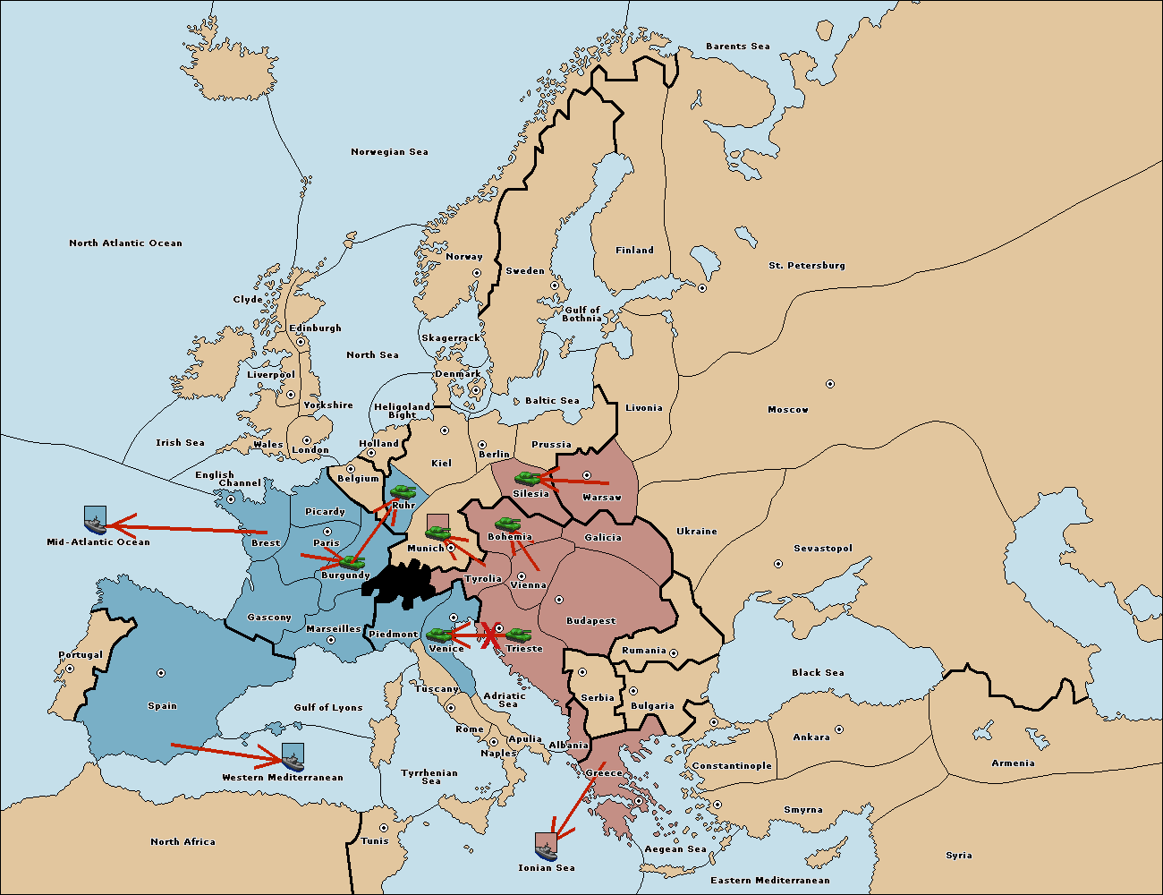The fleet at Mid-Atlantic Ocean move to Western Mediterranean.
