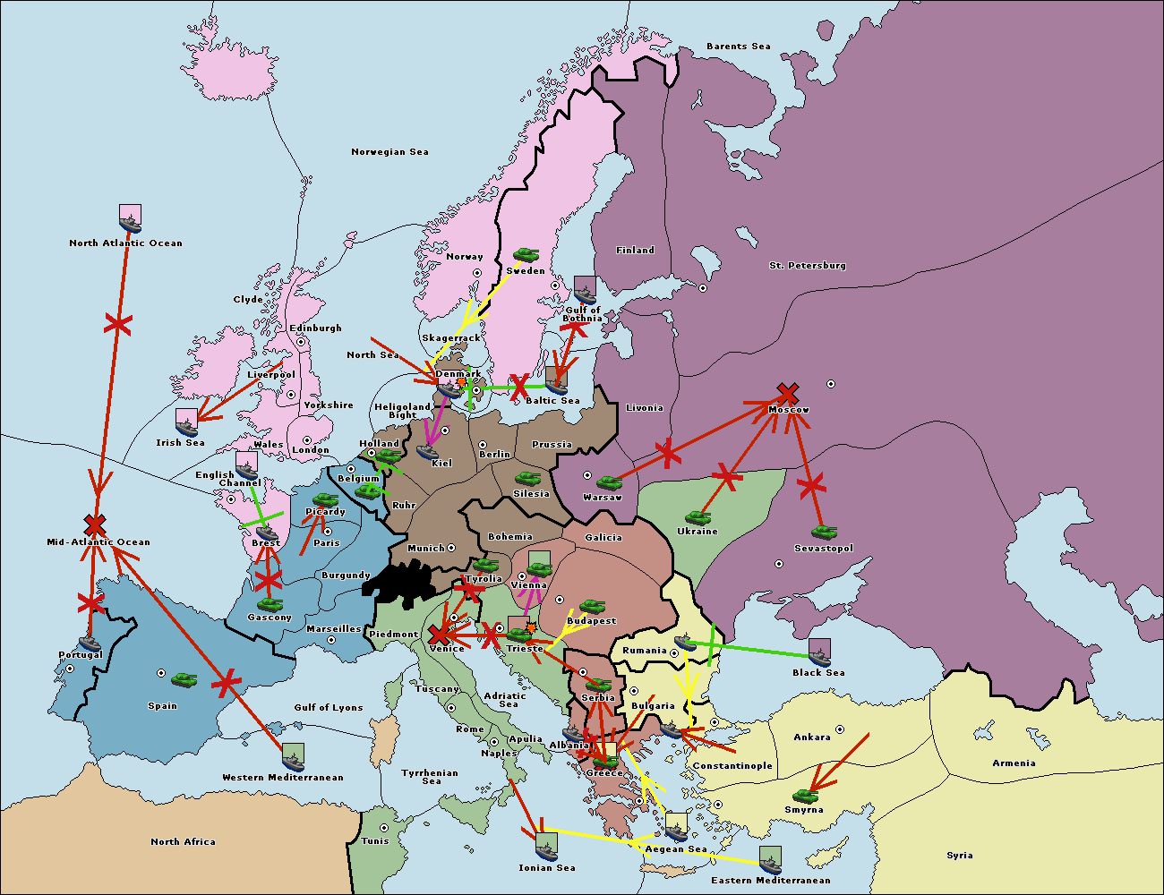 The fleet at Bulgaria (South Coast) move to Greece.