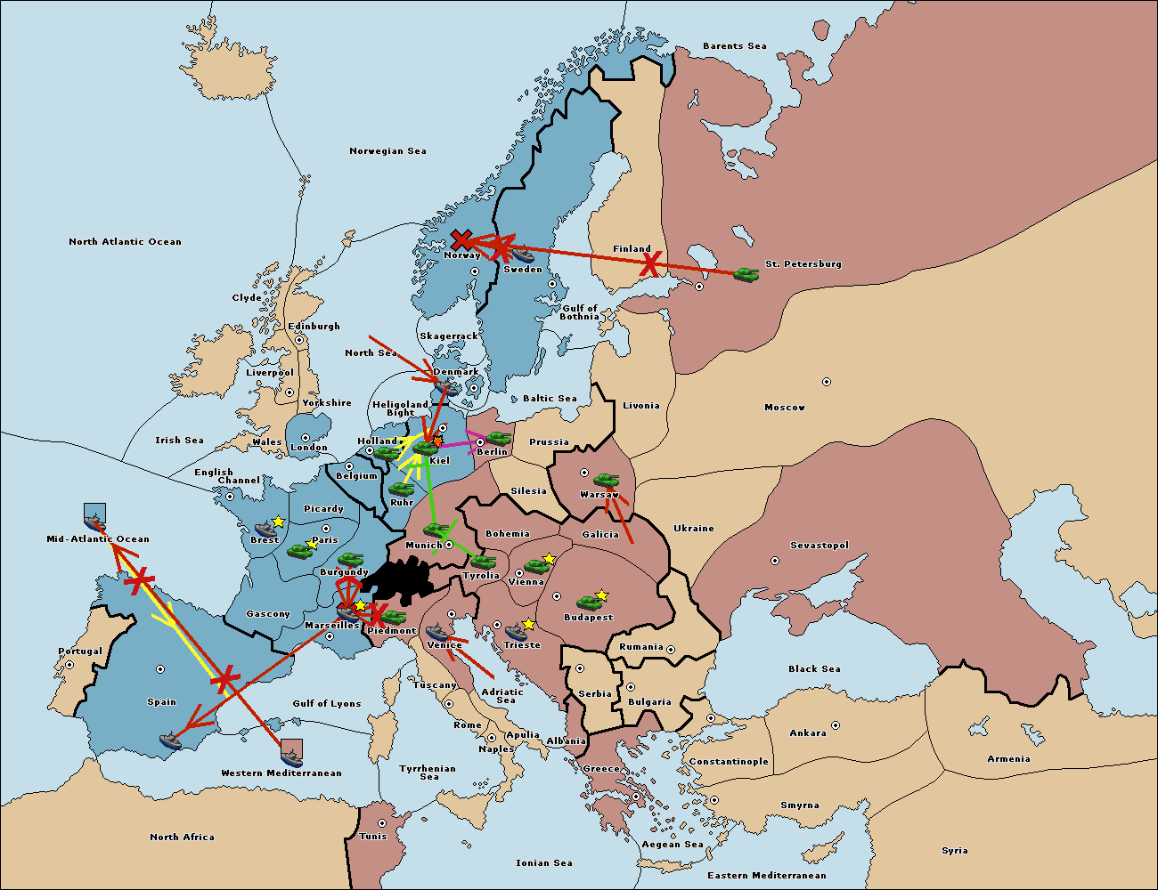 The fleet at Mid-Atlantic Ocean move to Western Mediterranean.