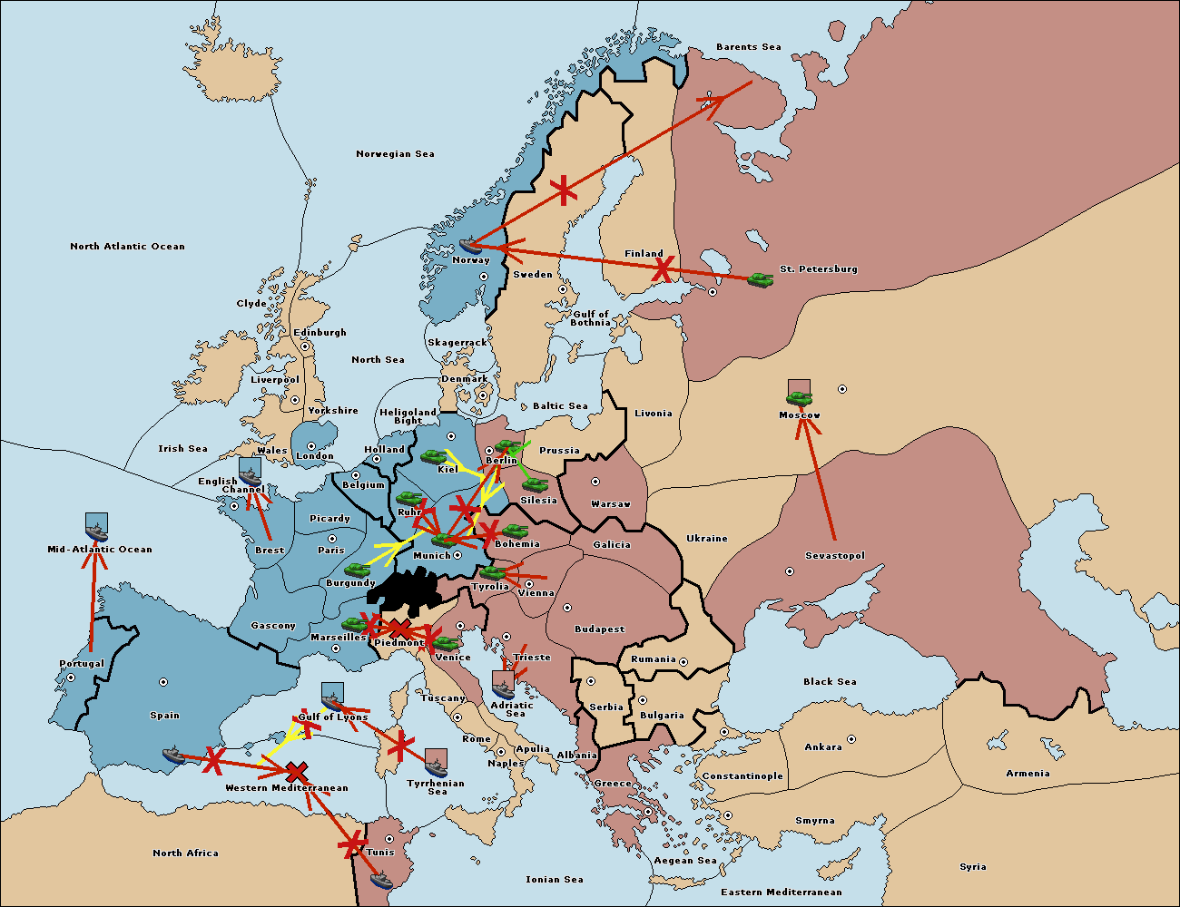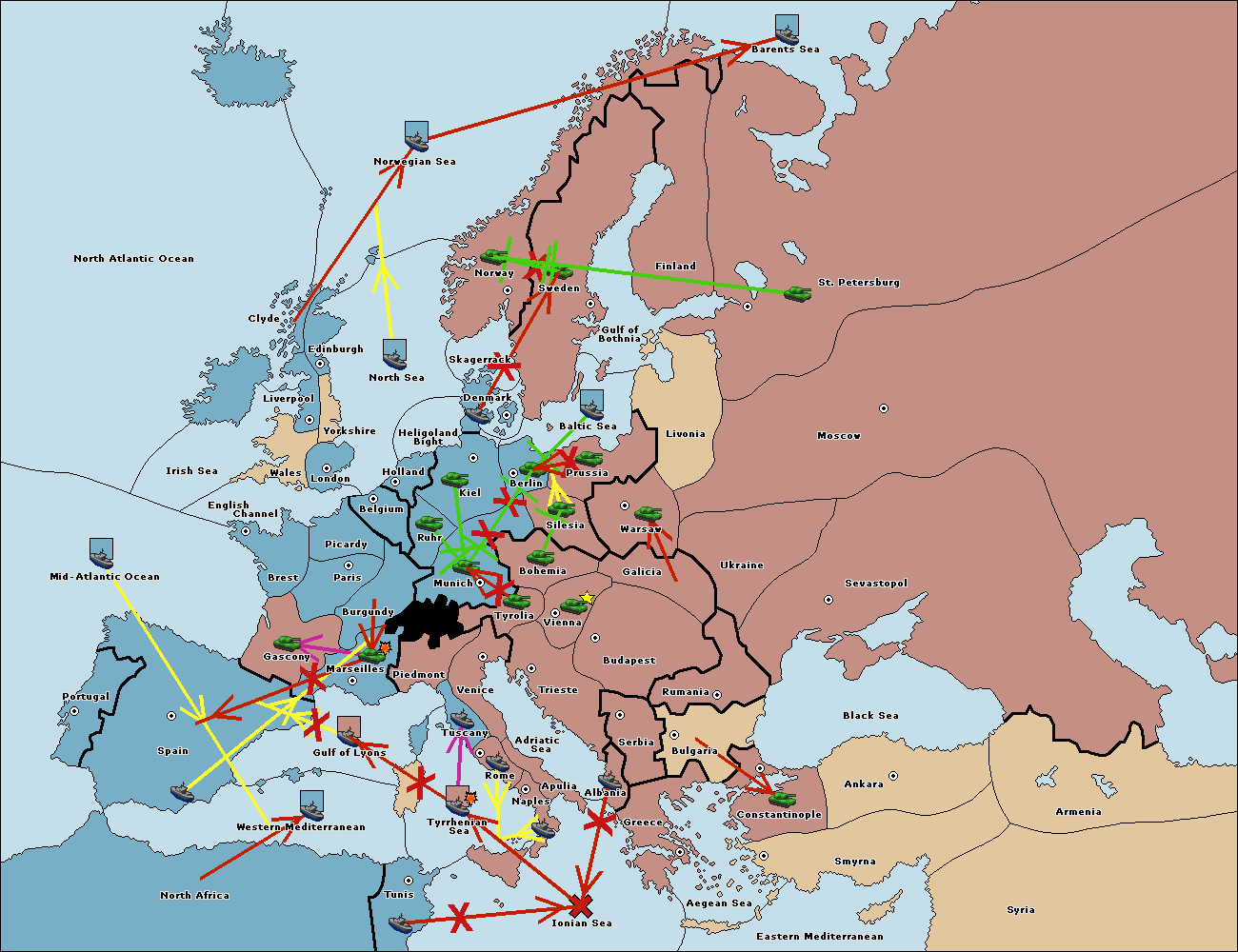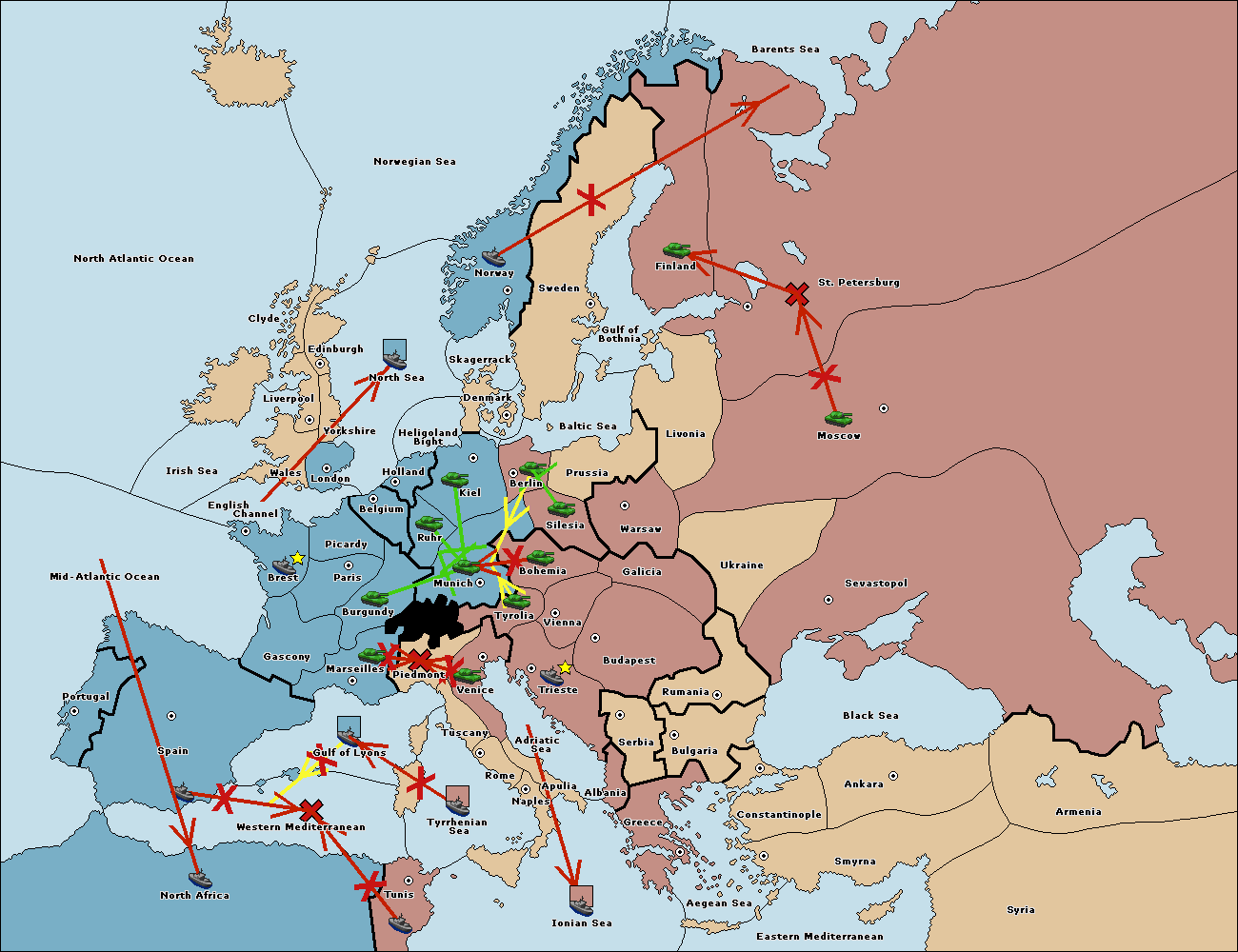 The fleet at Spain (South Coast) support hold to Marseilles.