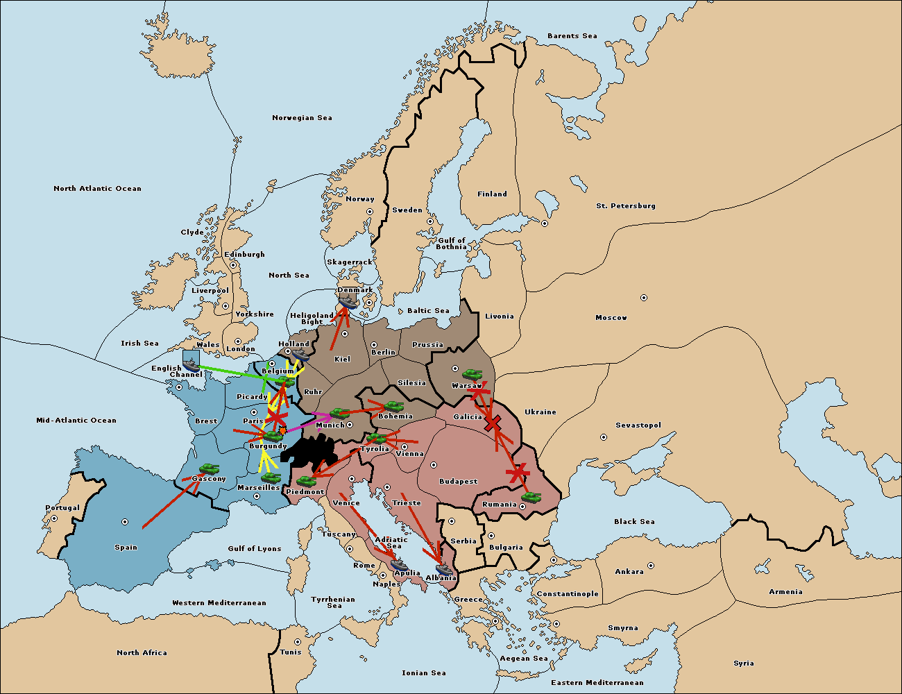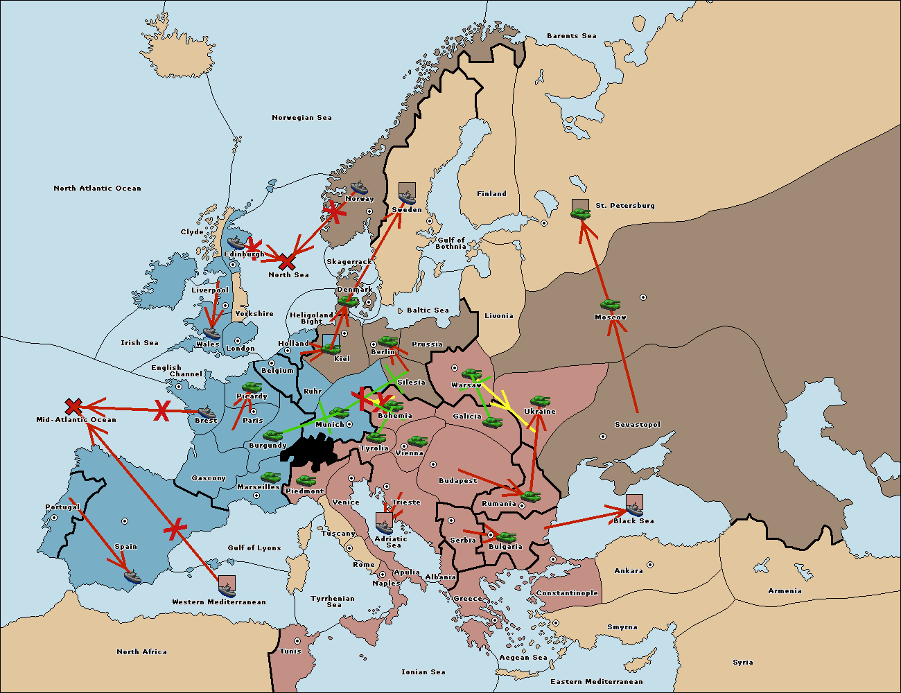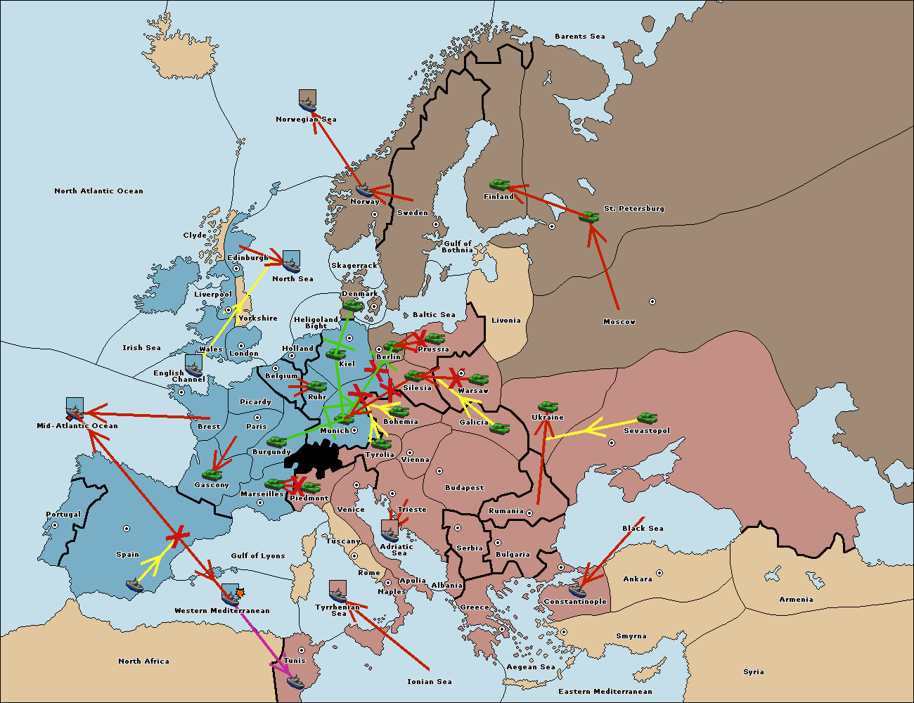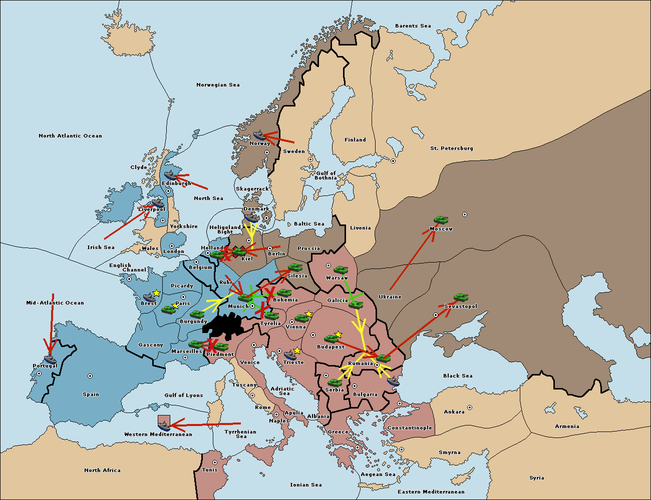 The fleet at Mid-Atlantic Ocean move to Western Mediterranean.