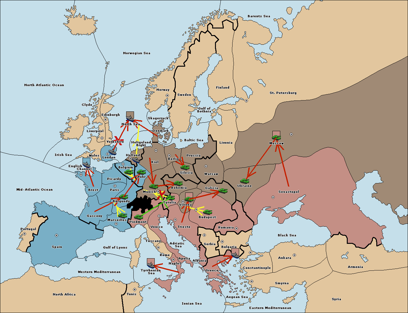 The army at Tyrolia support move to Munich from Burgundy.