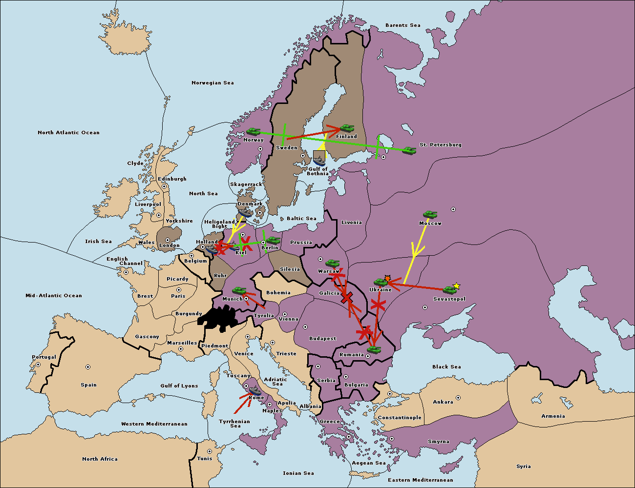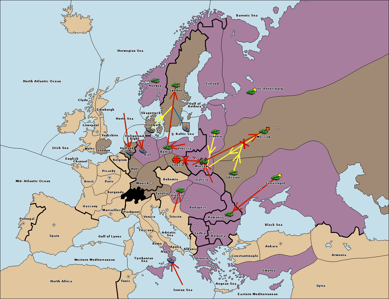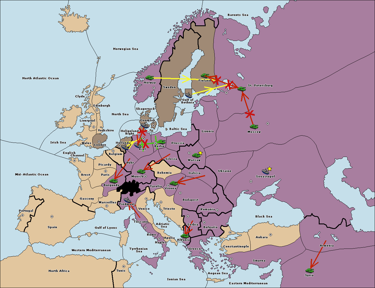 The fleet at Bulgaria (North Coast) move to Constantinople.