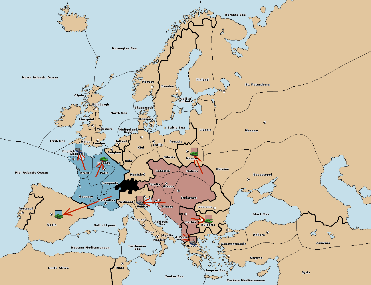 The army at Kiel support move to Munich from Tyrolia.