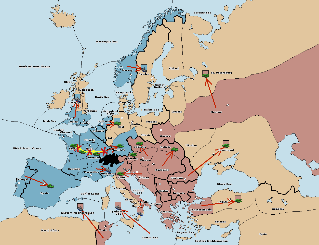 The army at Paris support move to Burgundy from Munich.