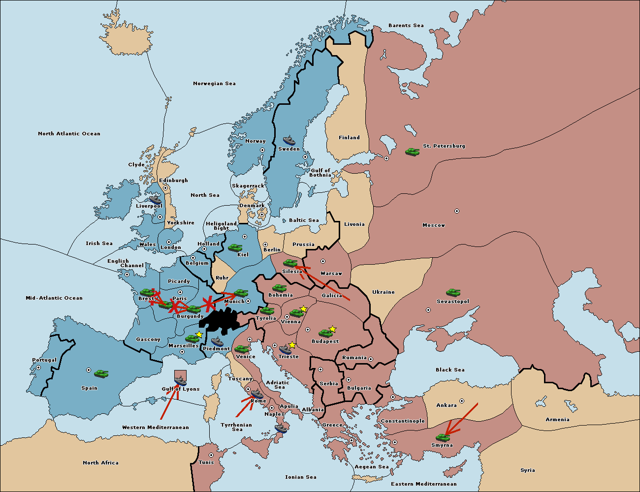 The fleet at Western Mediterranean move to Gulf of Lyons.