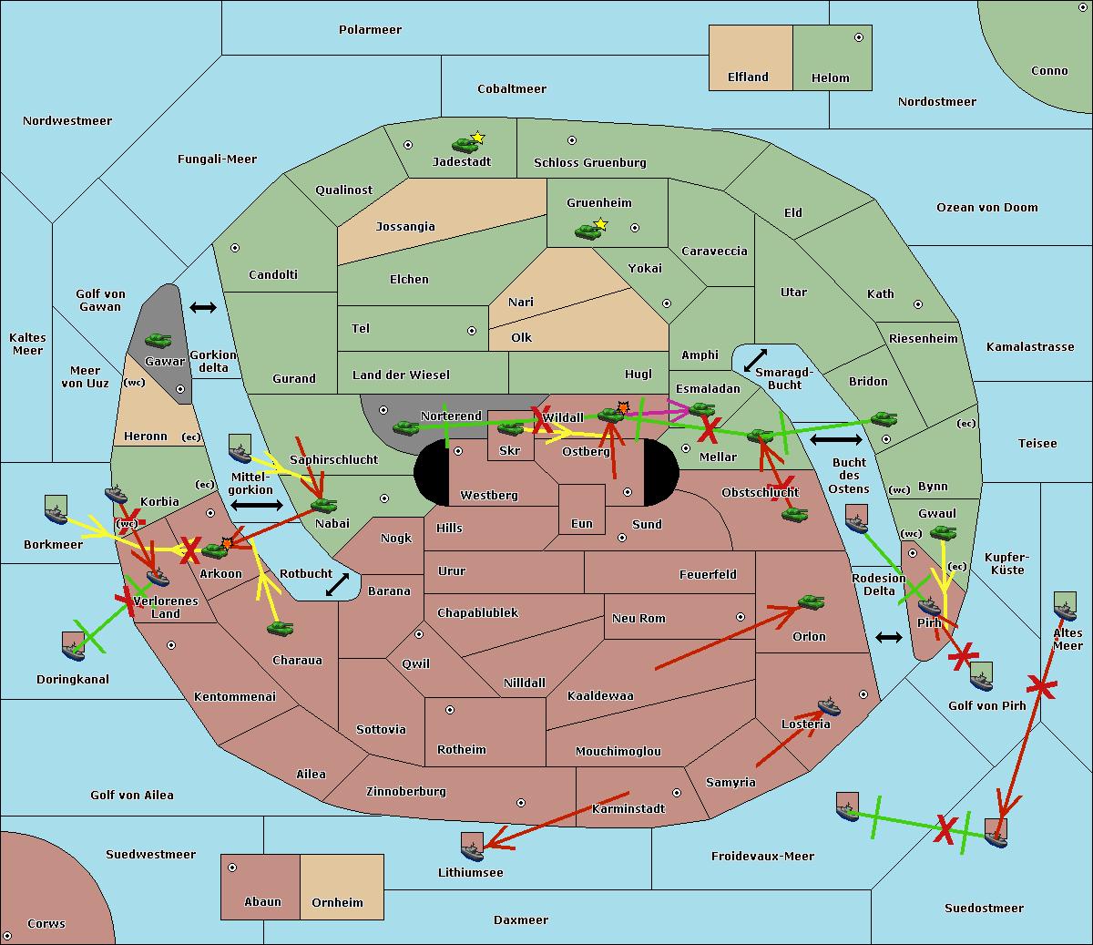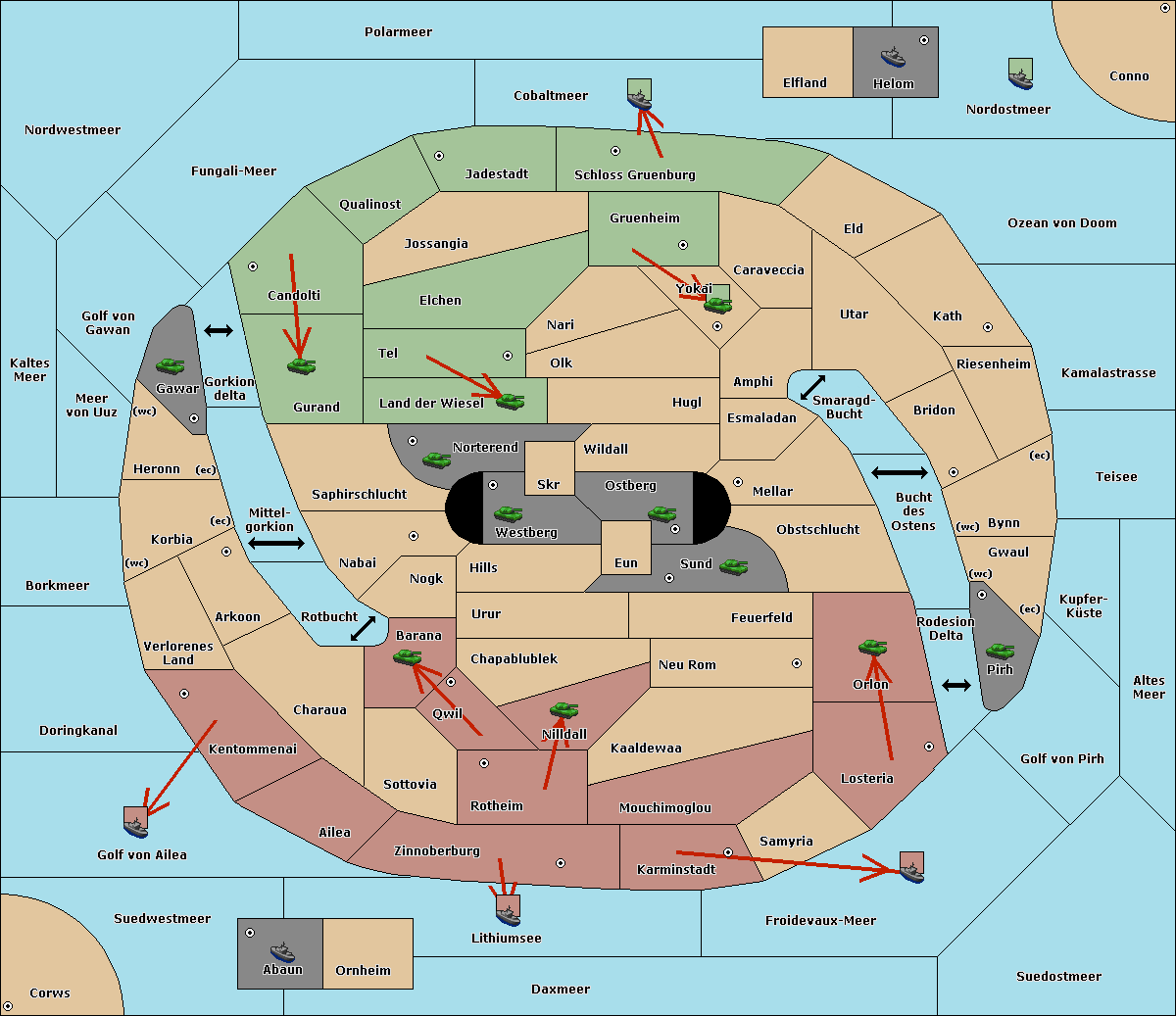 The fleet at Korbia (West Coast) move to Verlorenes Land.