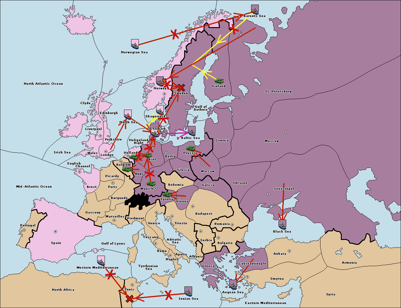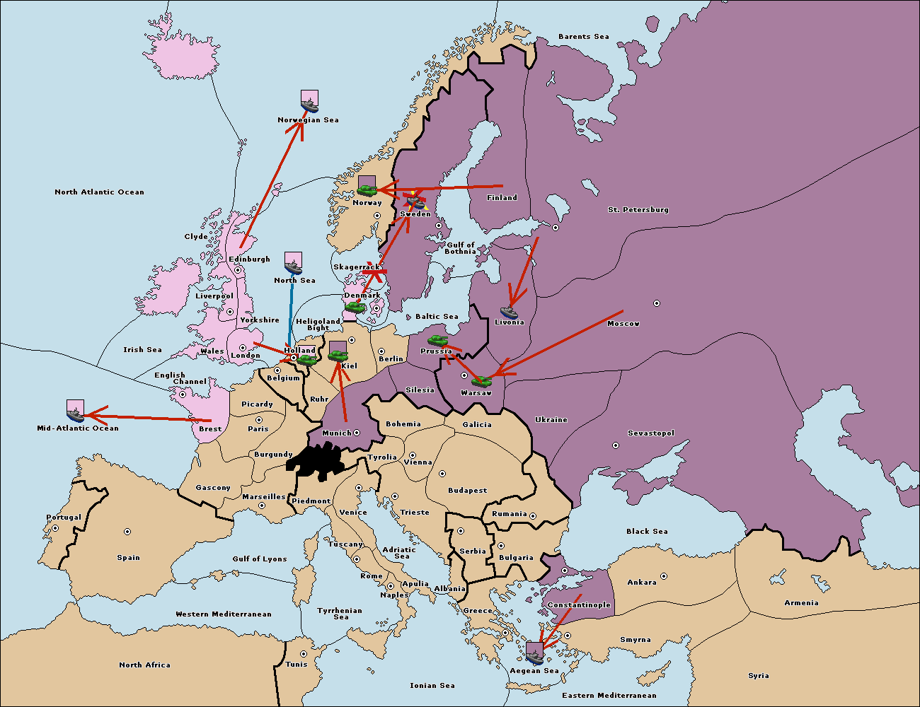 The fleet at St. Petersburg (South Coast) move to Livonia.