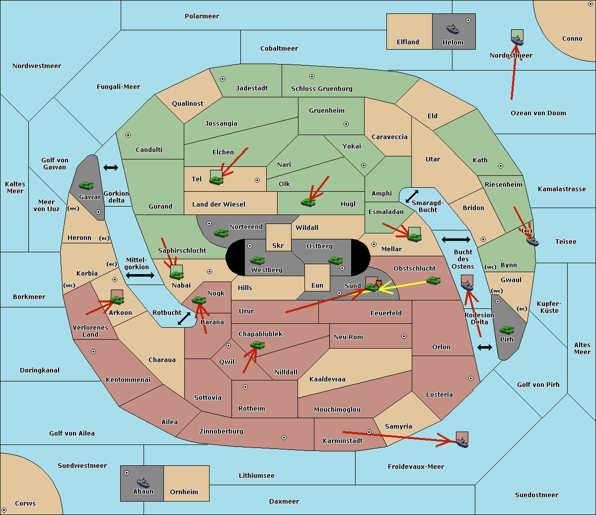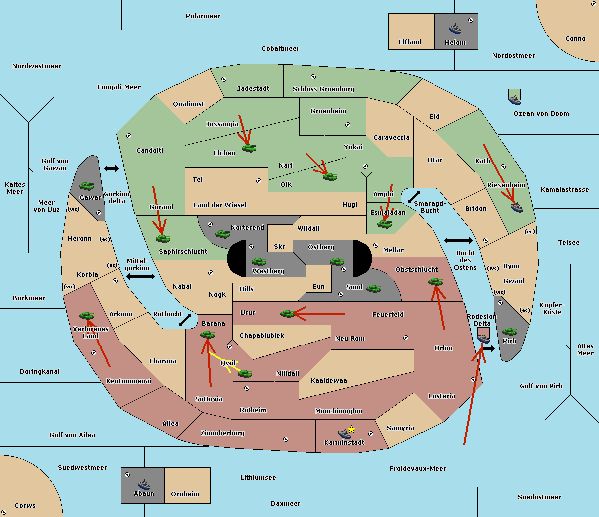 The fleet at Schloss Gruenburg move to Ozean von Doom.