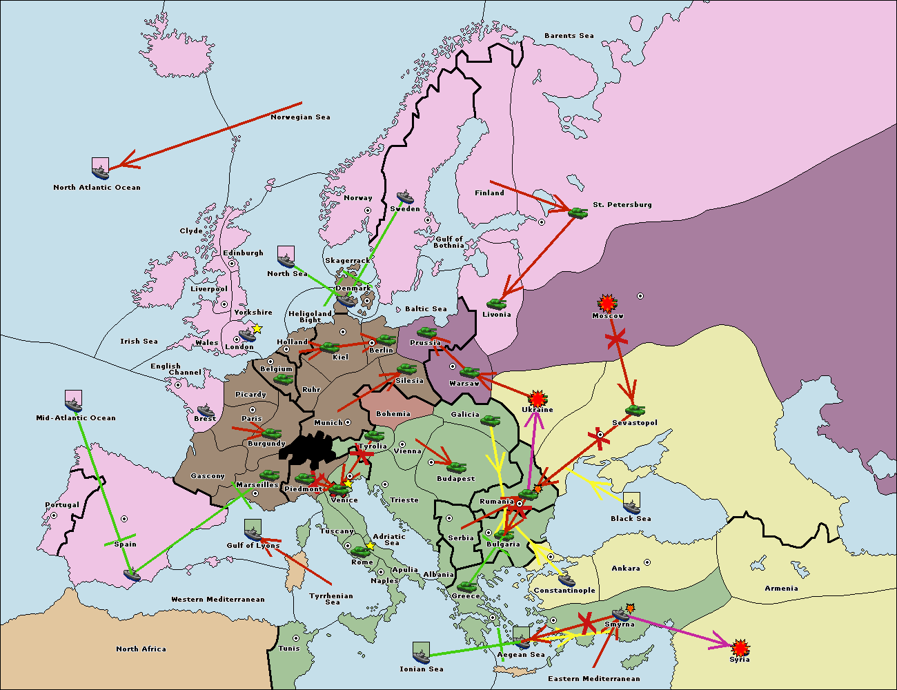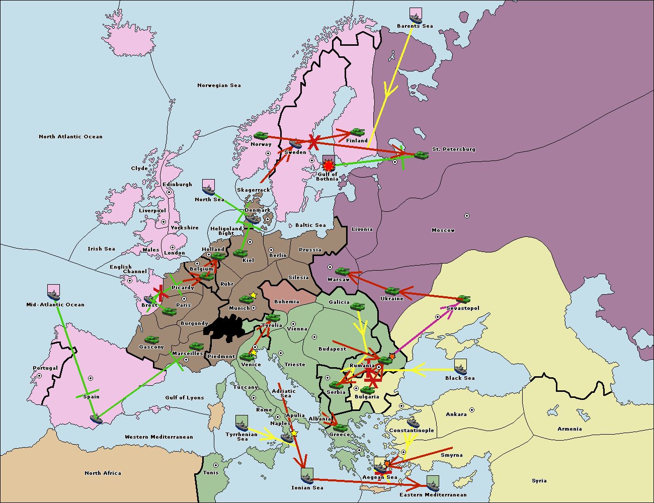 The fleet at Spain (South Coast) support move to Marseilles from Burgundy.