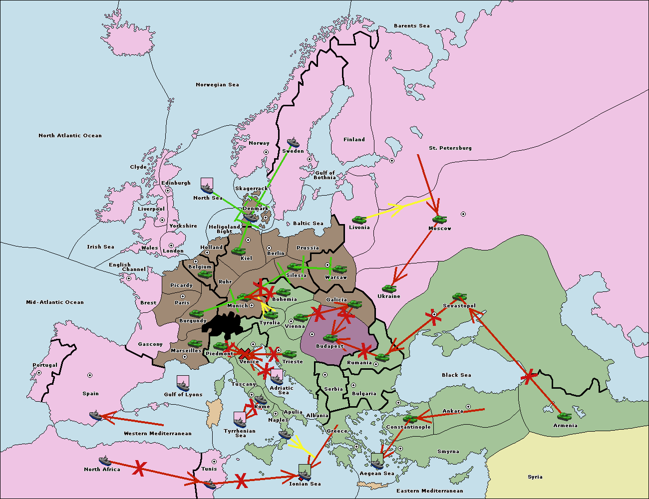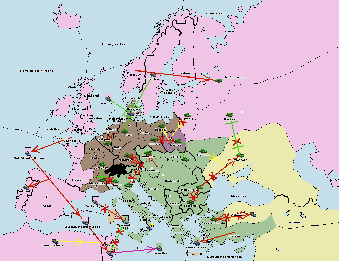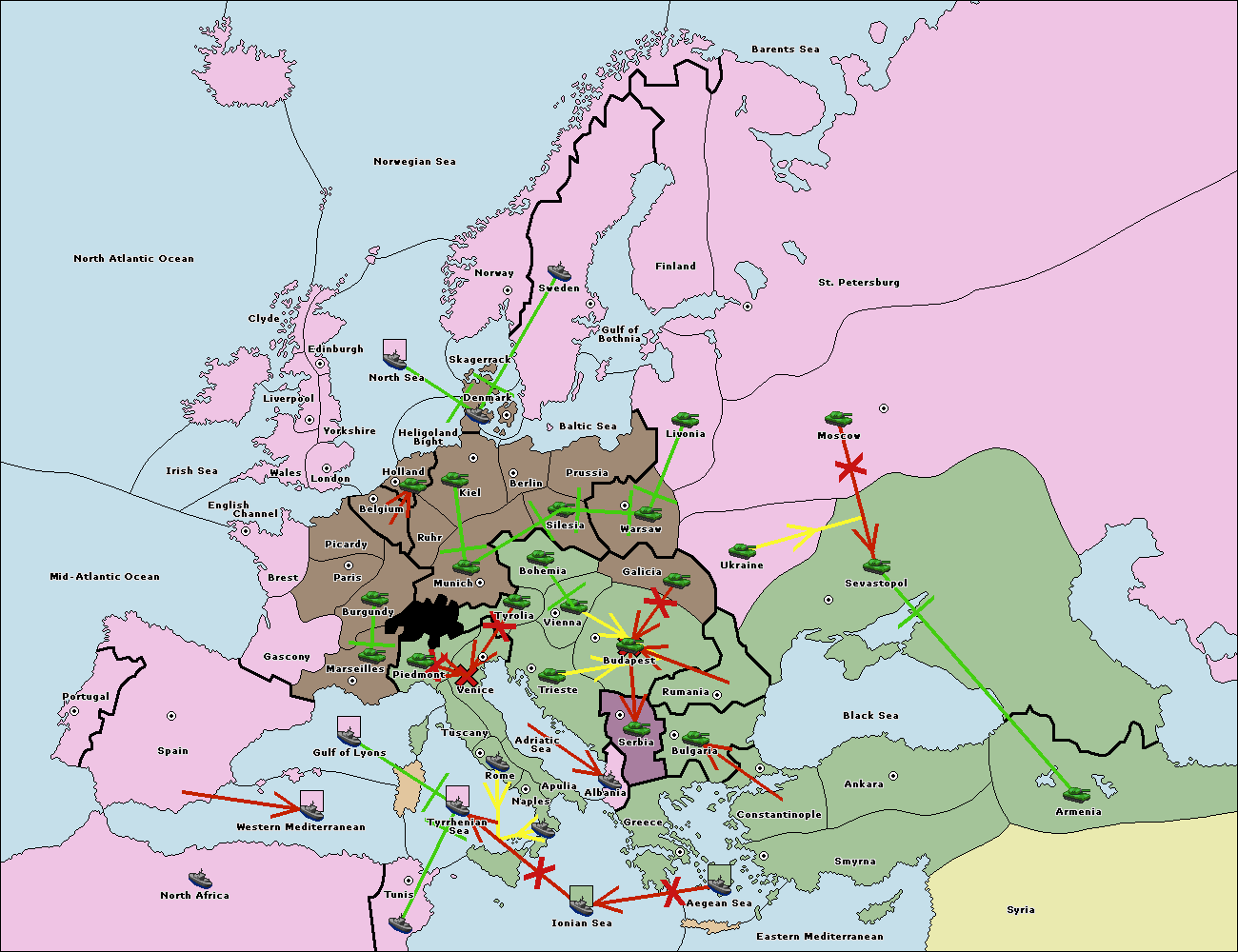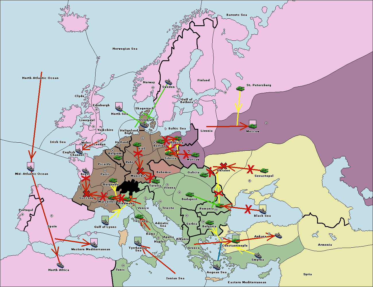 The fleet at Spain (South Coast) support move to Marseilles from Piedmont.