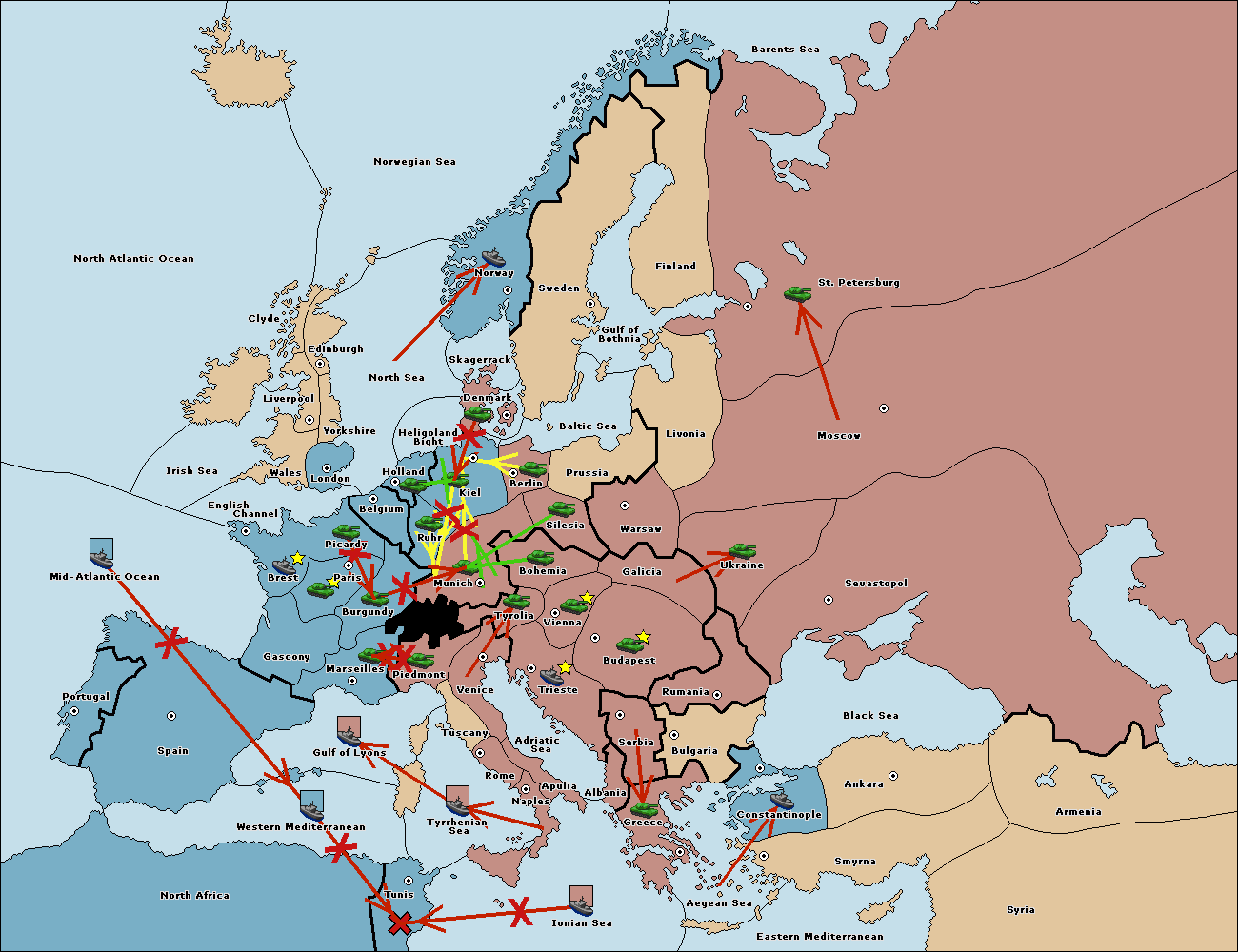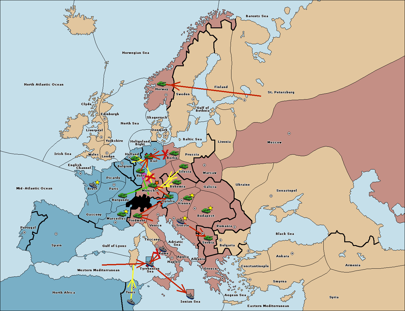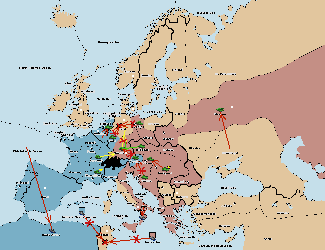 The fleet at Mid-Atlantic Ocean move to Western Mediterranean.