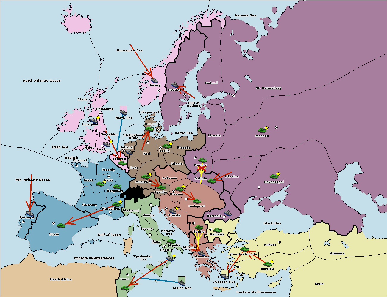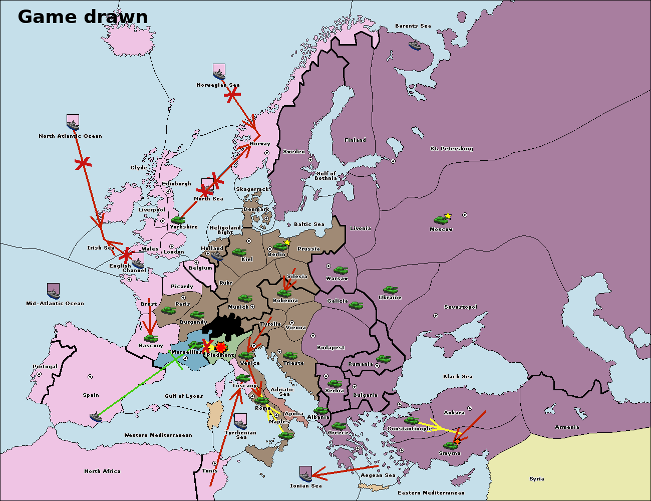 The fleet at Spain (South Coast) support hold to Marseilles.