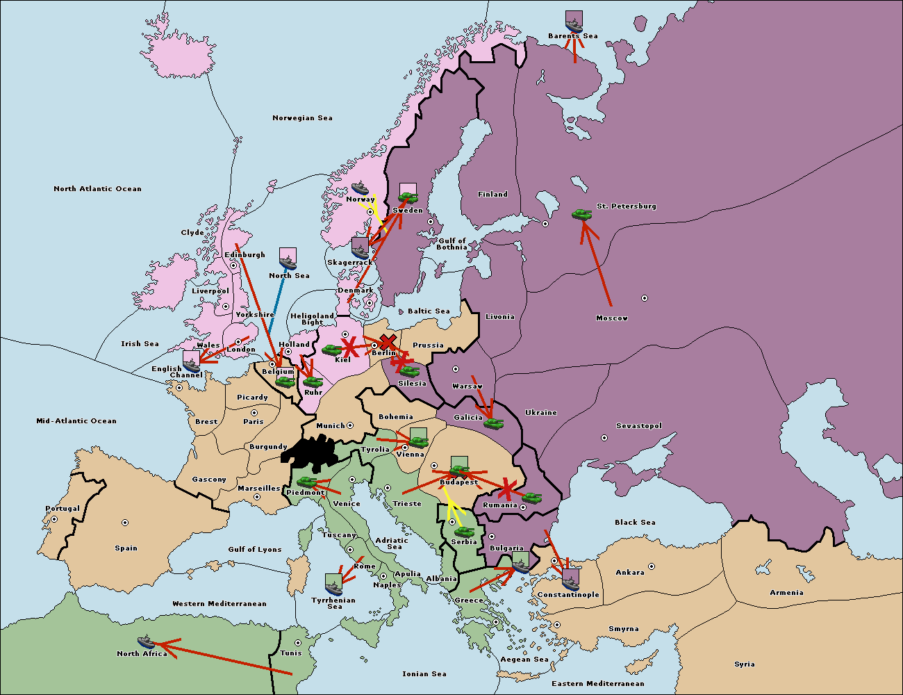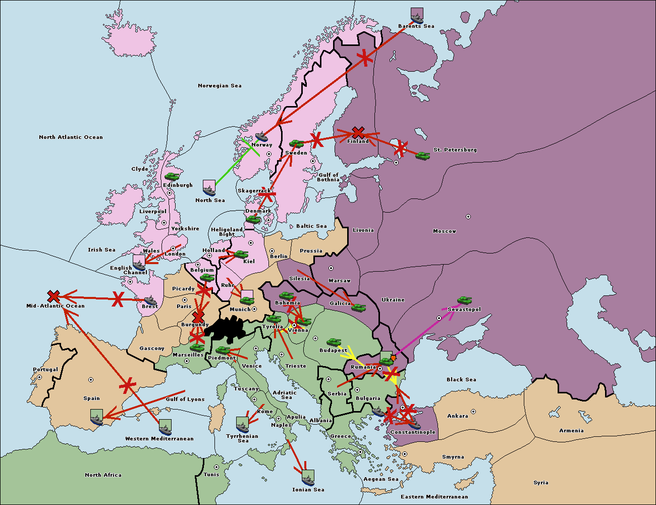 The fleet at Bulgaria (South Coast) support hold to Constantinople.