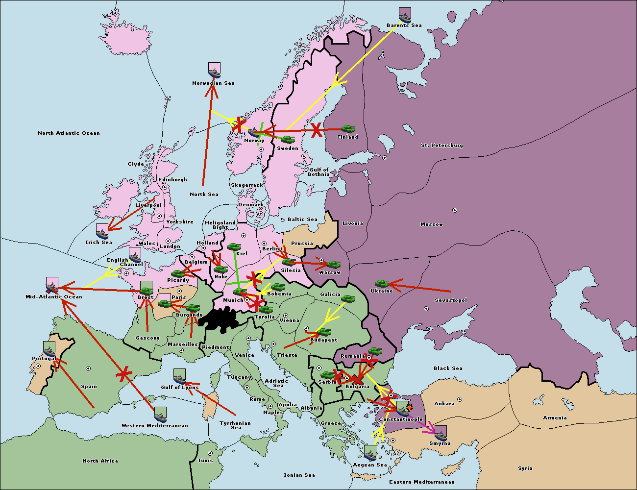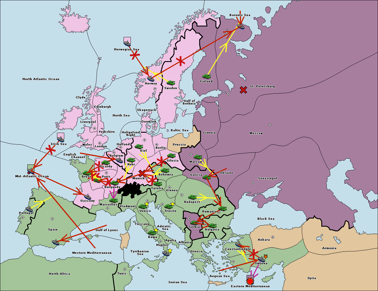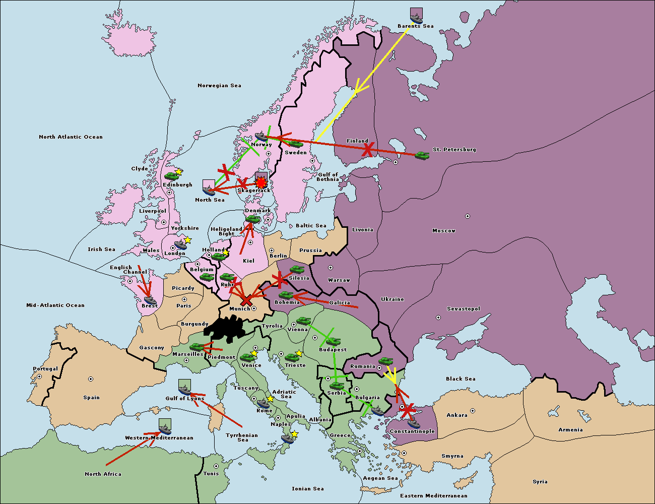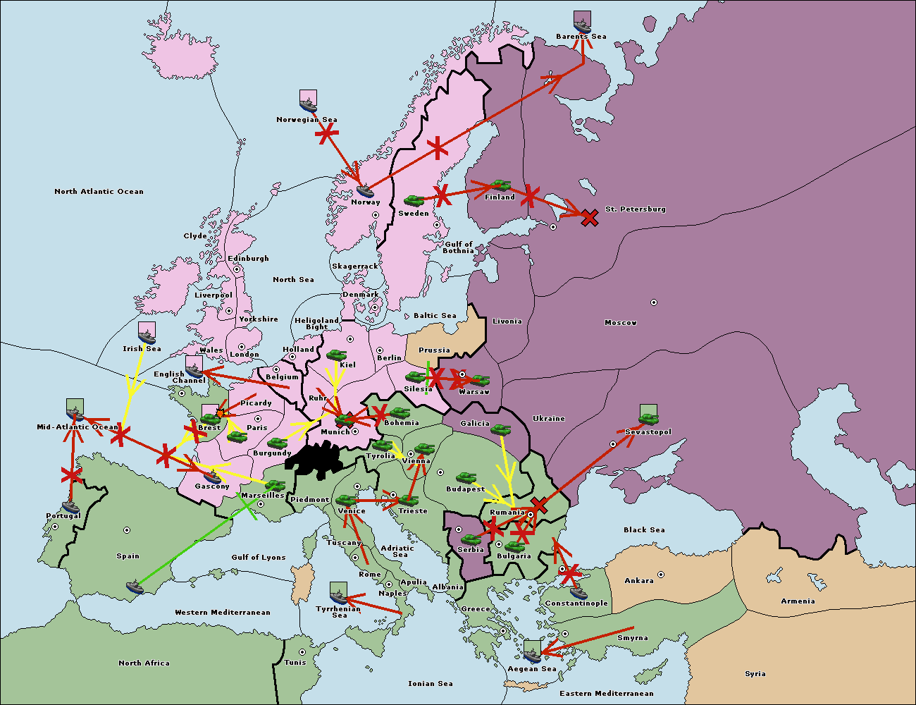 The fleet at Spain (South Coast) support move to Marseilles from Piedmont.