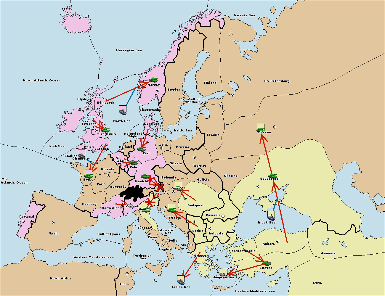The army at Vienna support move to Tyrolia from Venice.