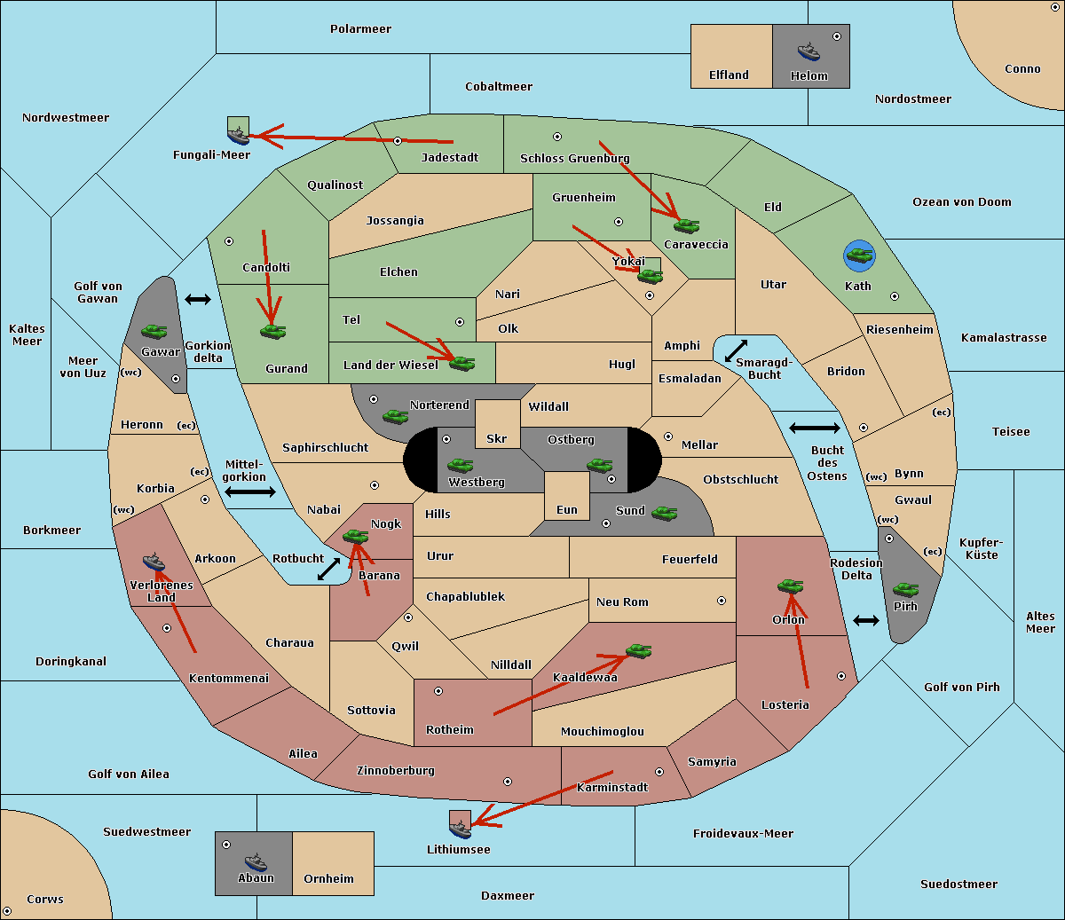 The fleet at Kaltes Meer move to Golf von Gawan.