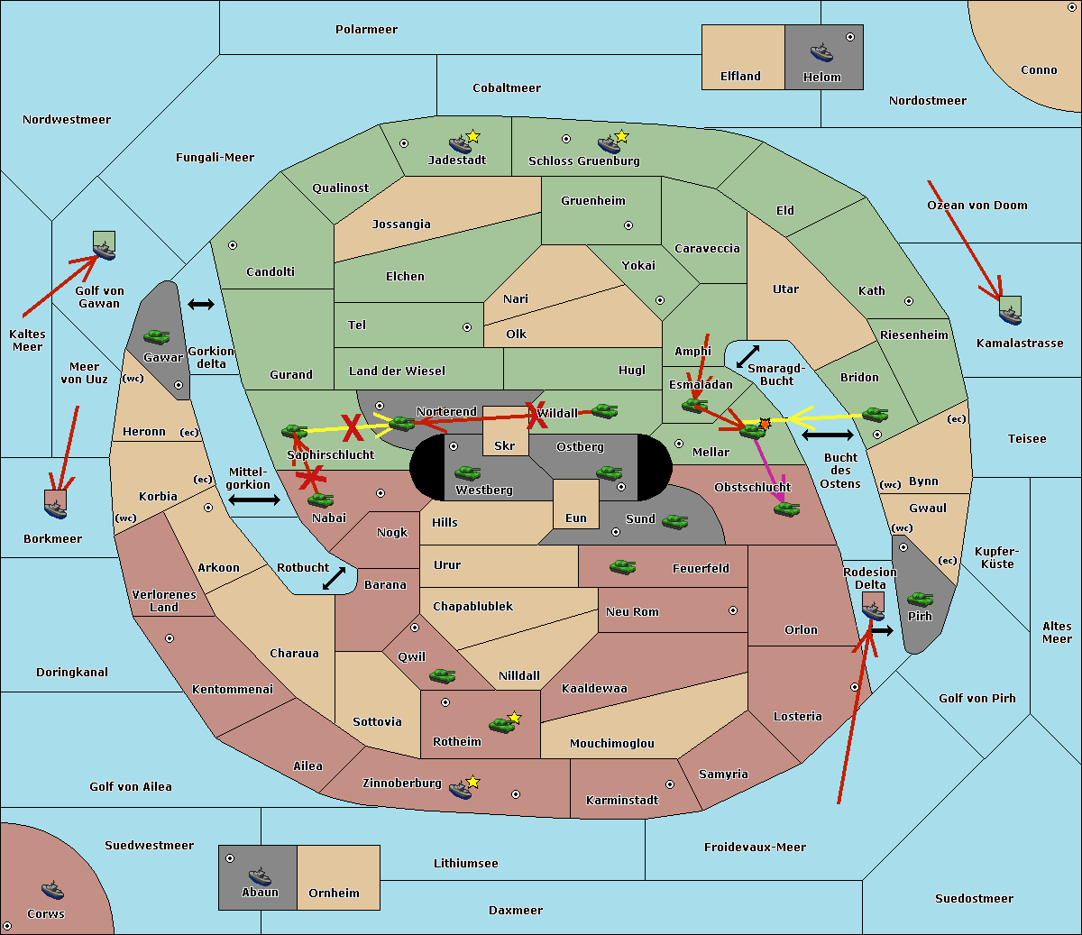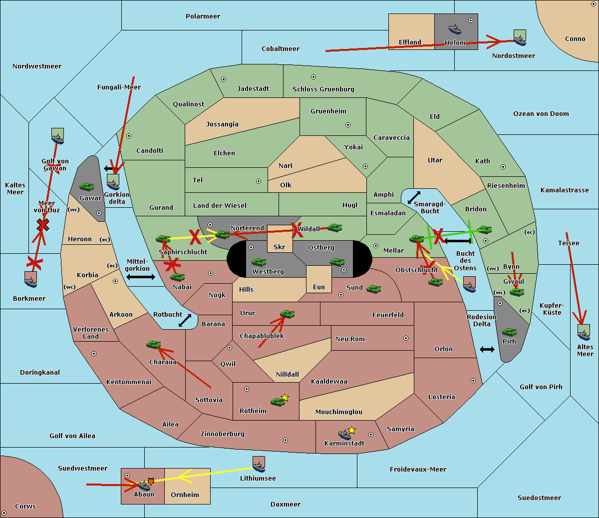 The fleet at Suedostmeer support move to Golf von Pirh from Froidevaux-Meer.