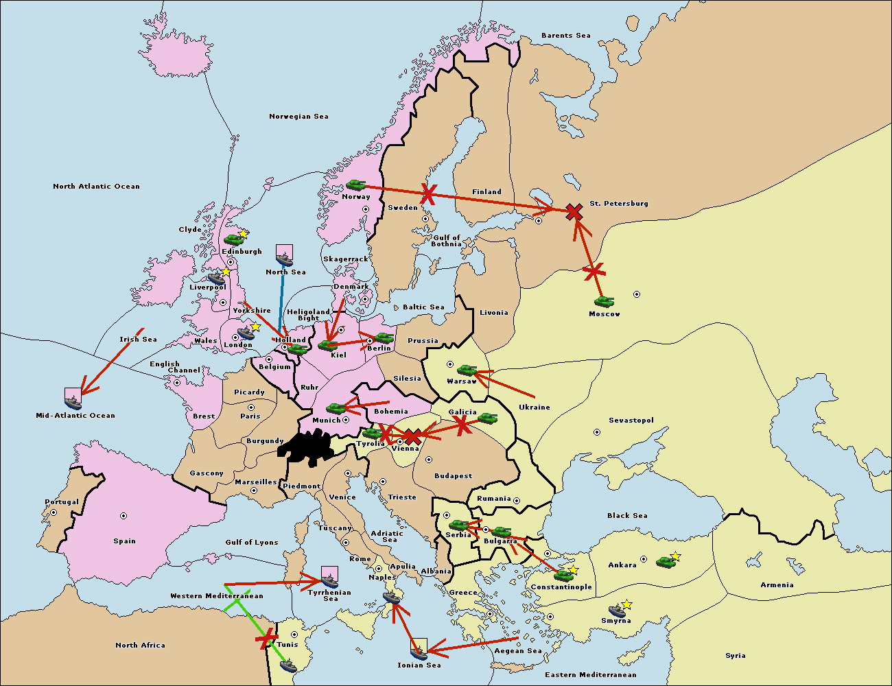 The fleet at Spain (South Coast) support move to Western Mediterranean from Mid-Atlantic Ocean.