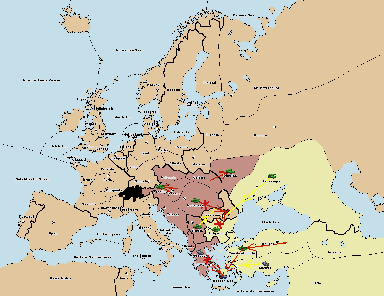 The fleet at Constantinople move to Bulgaria (South Coast).