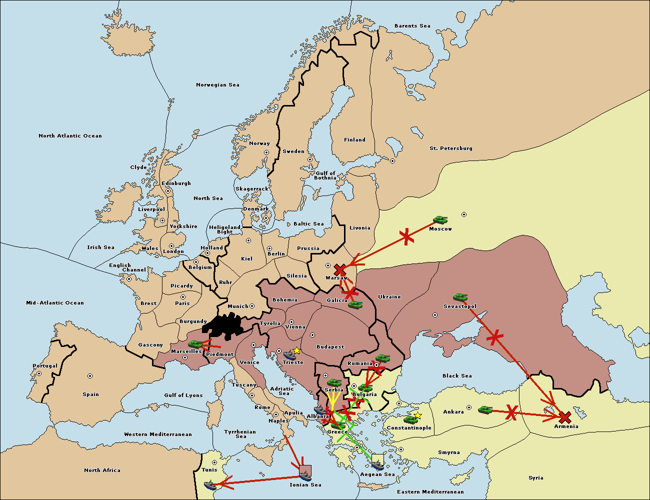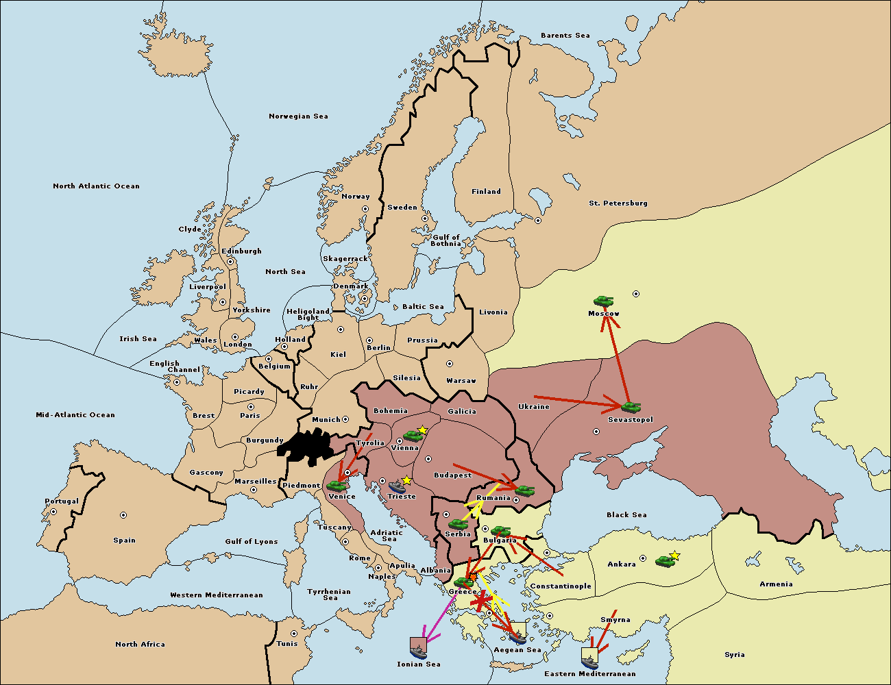 The fleet at Aegean Sea support move to Greece from Bulgaria.