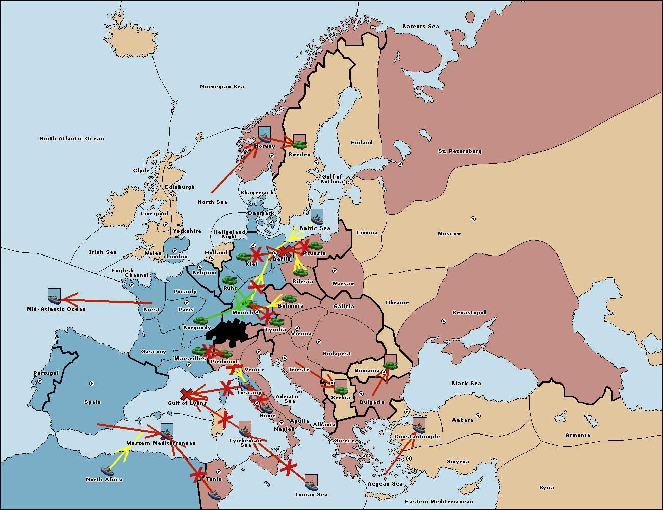 The fleet at Spain (South Coast) support hold to Gulf of Lyons.