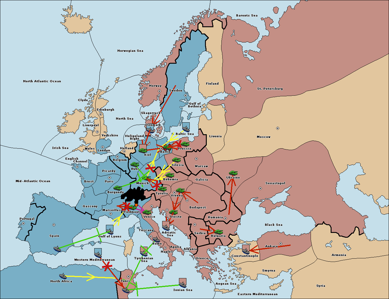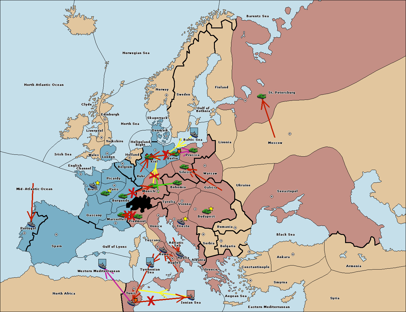 The fleet at Ionian Sea support move to Tunis from Tyrrhenian Sea.