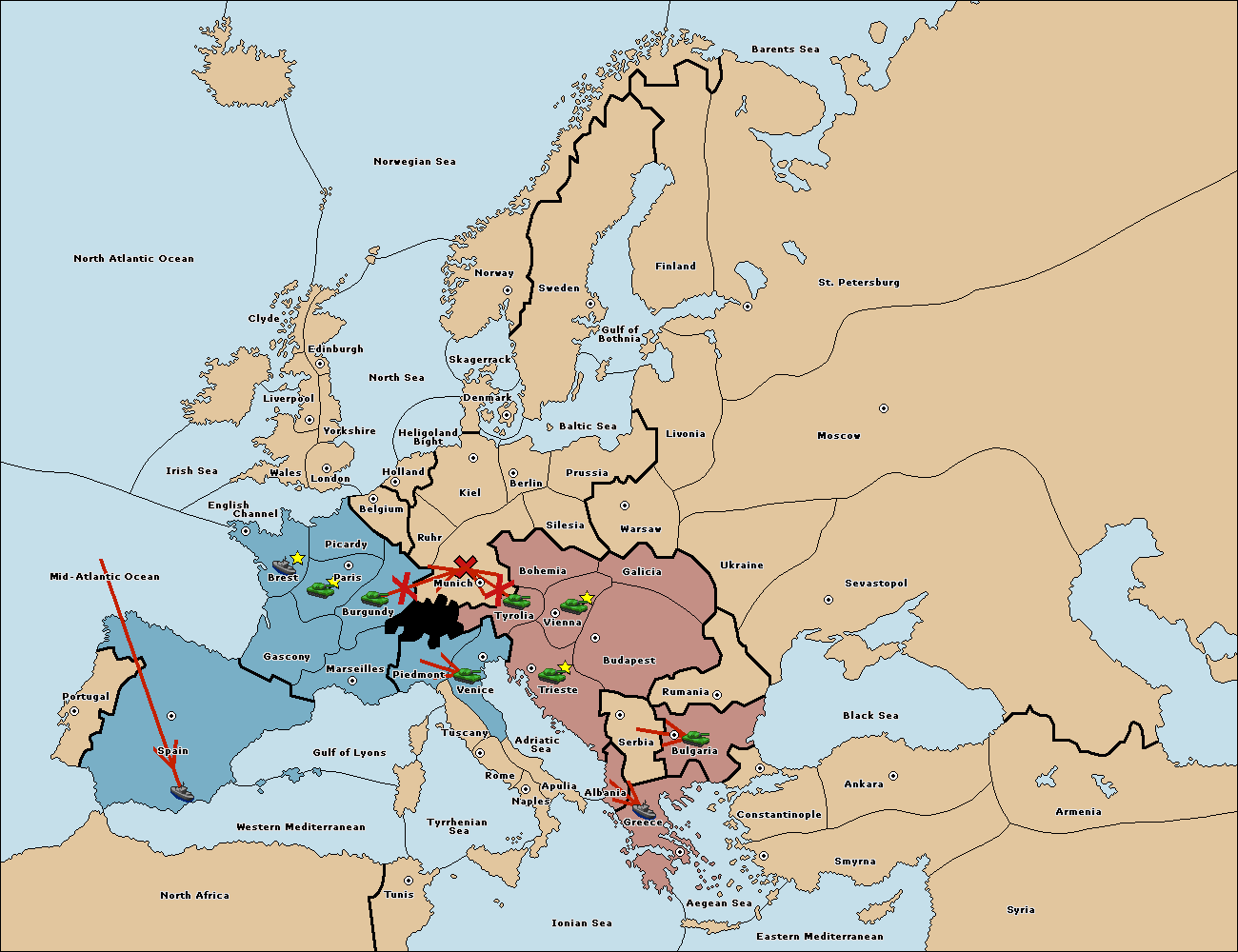 The army at Tyrolia move to Munich.
