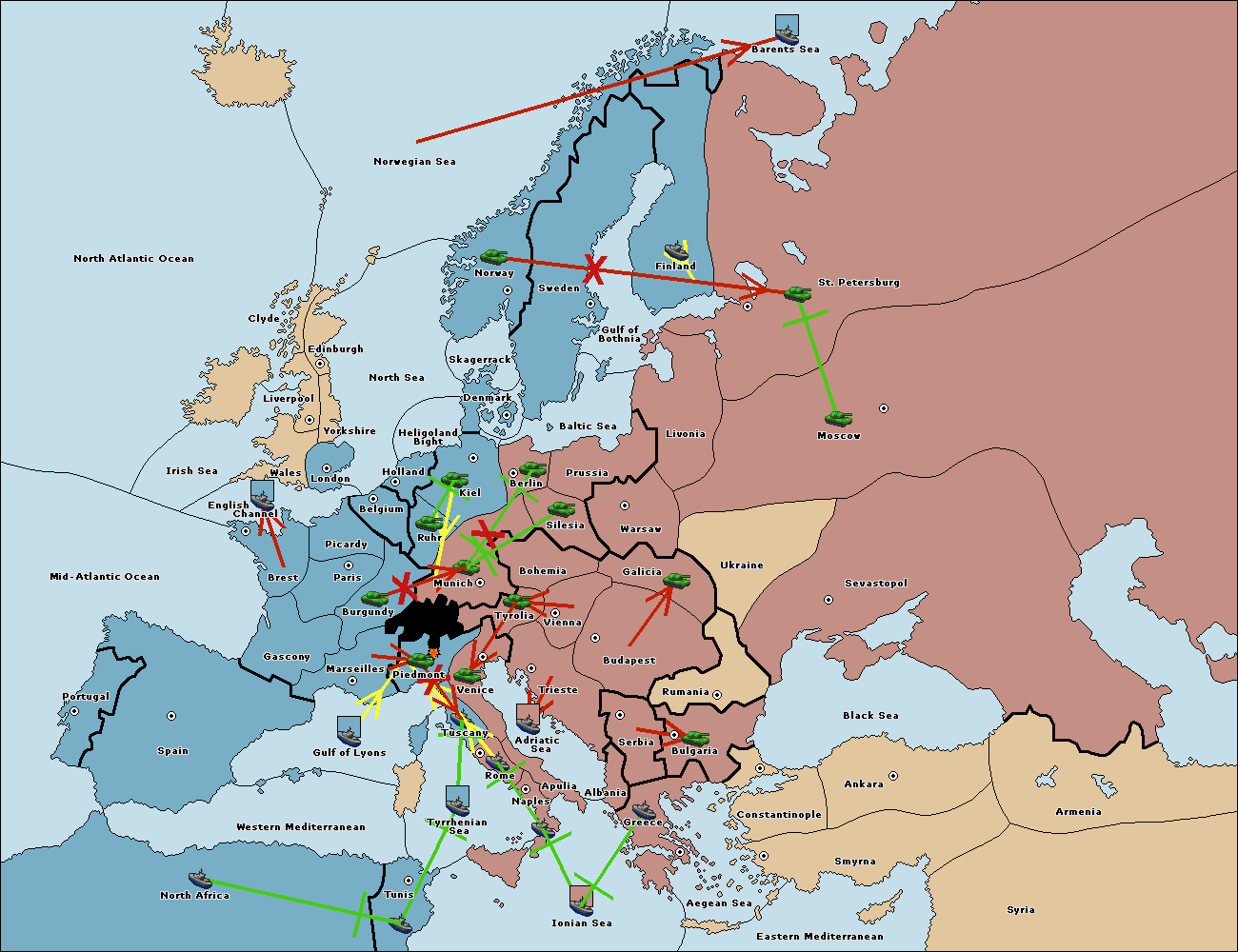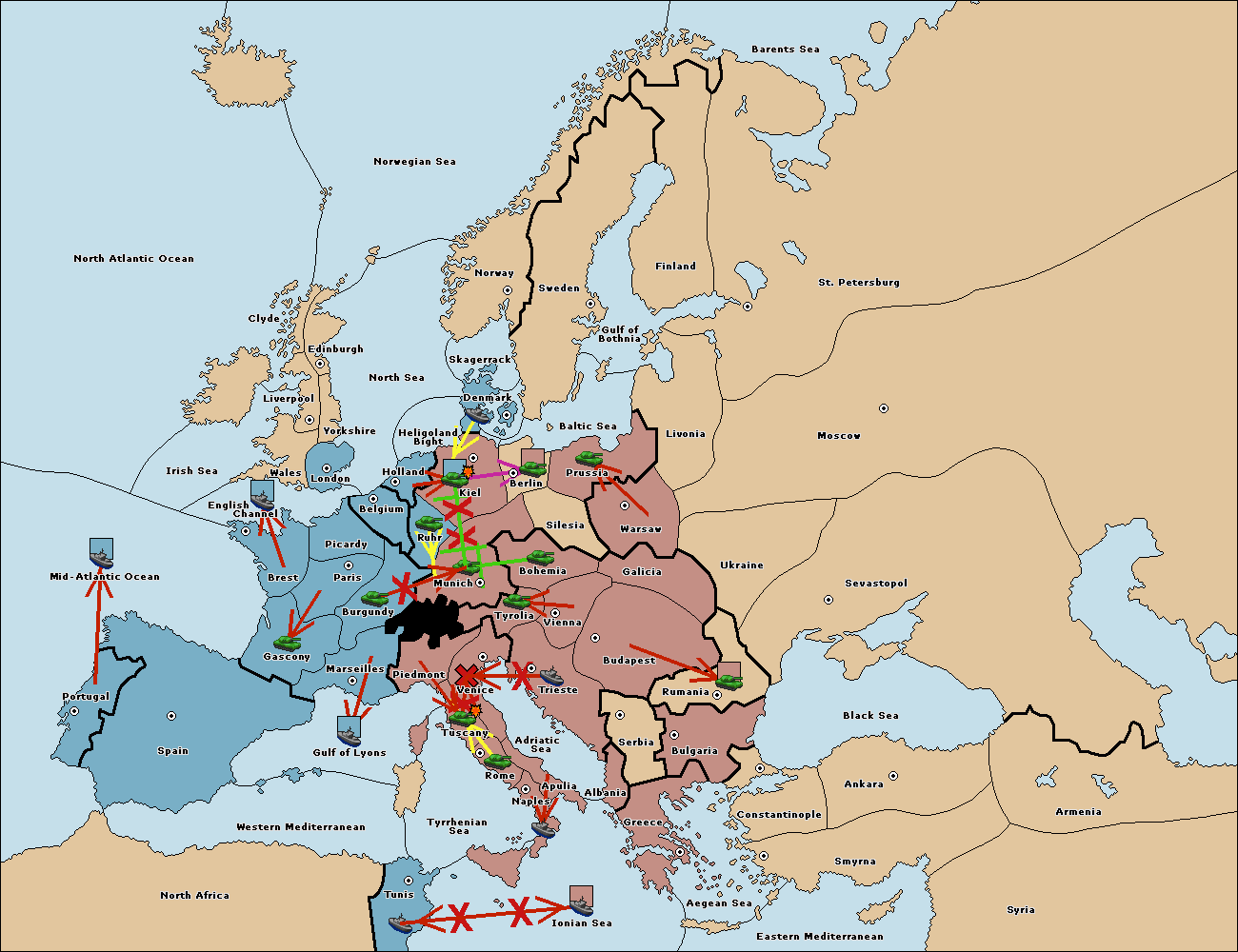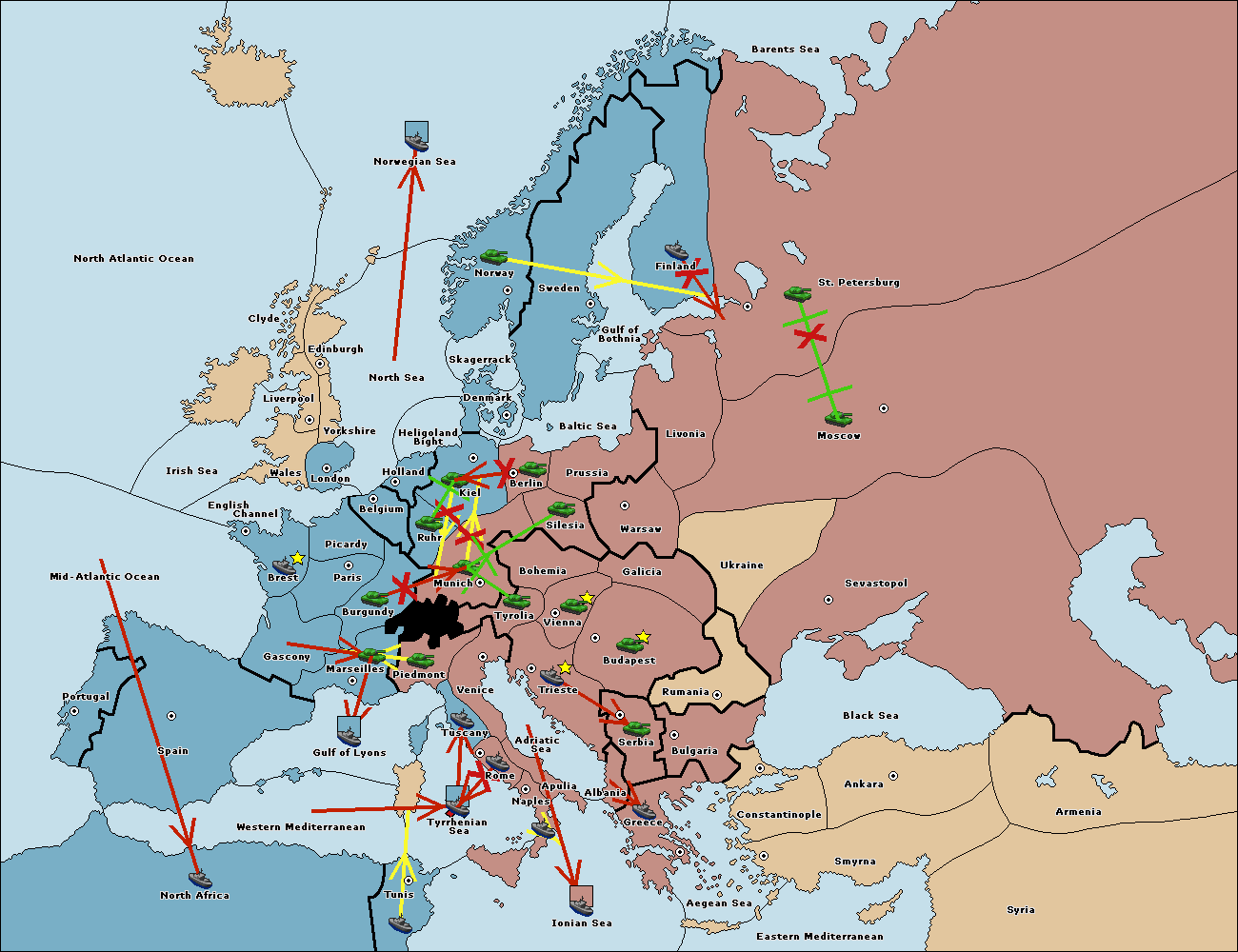 The fleet at Mid-Atlantic Ocean move to Western Mediterranean.
