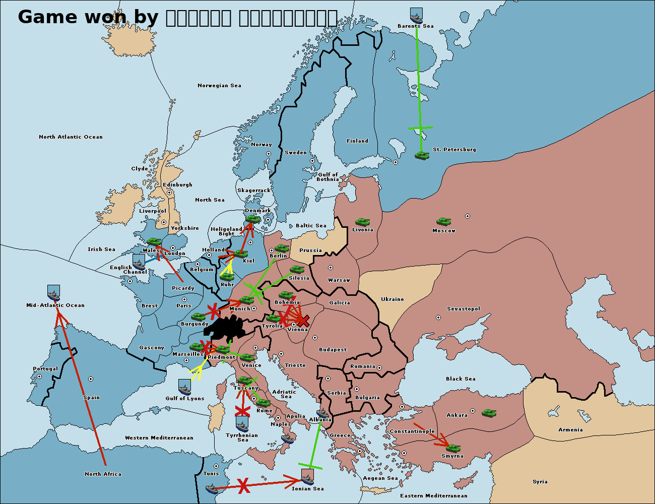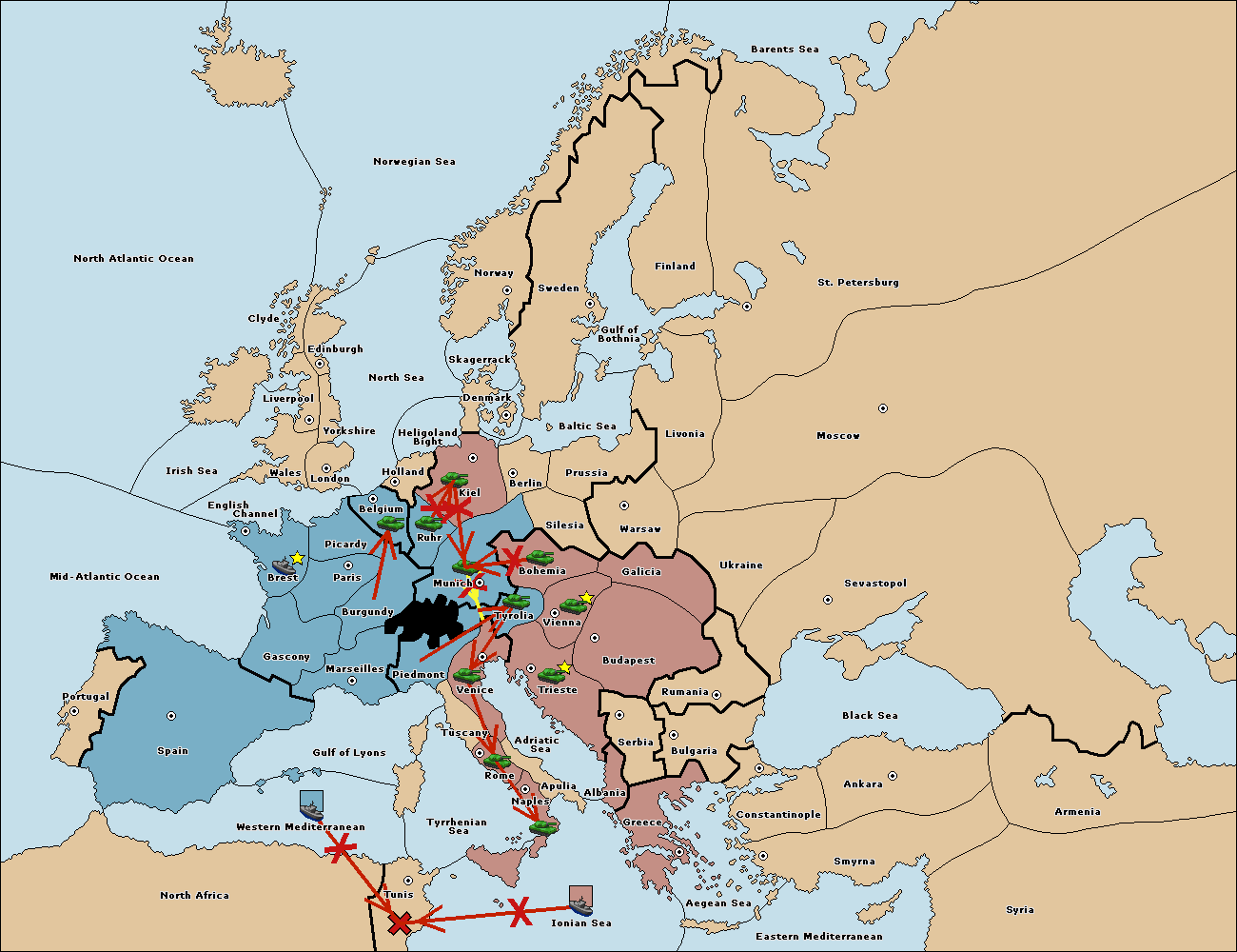 The fleet at Ionian Sea support move to Tunis from Tuscany.