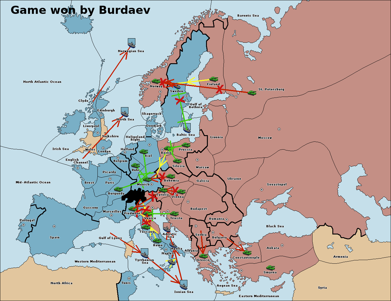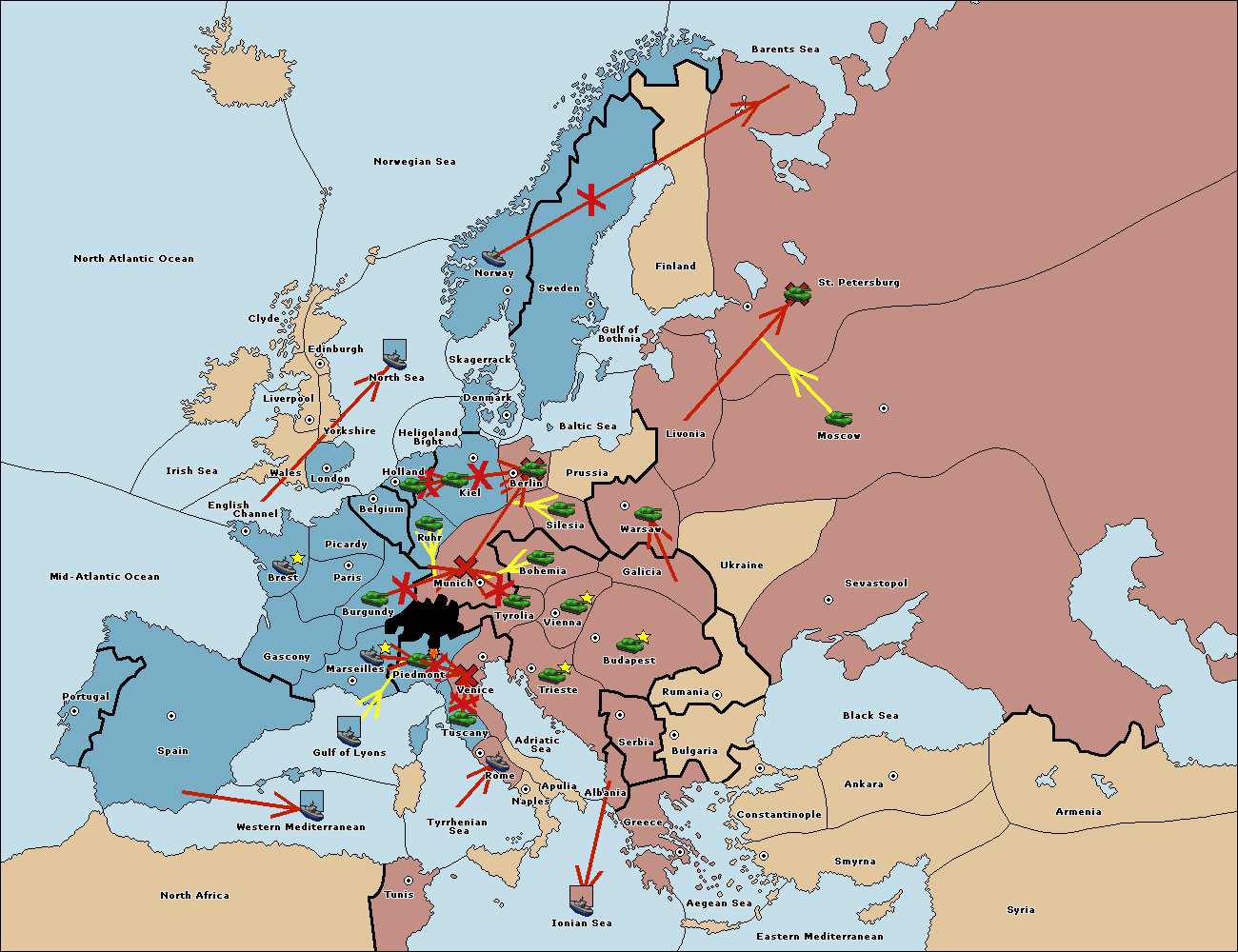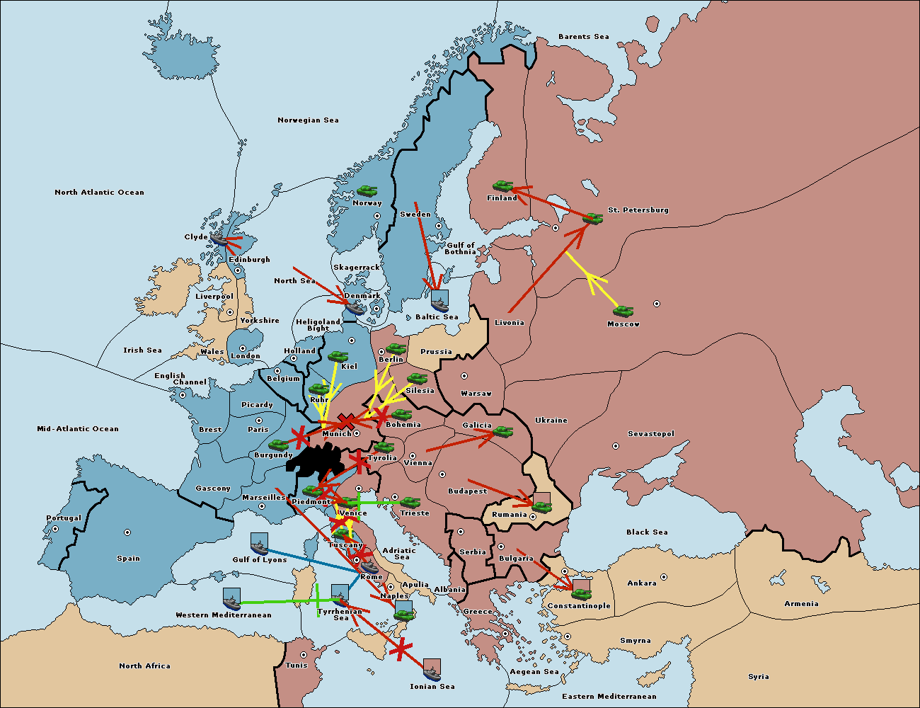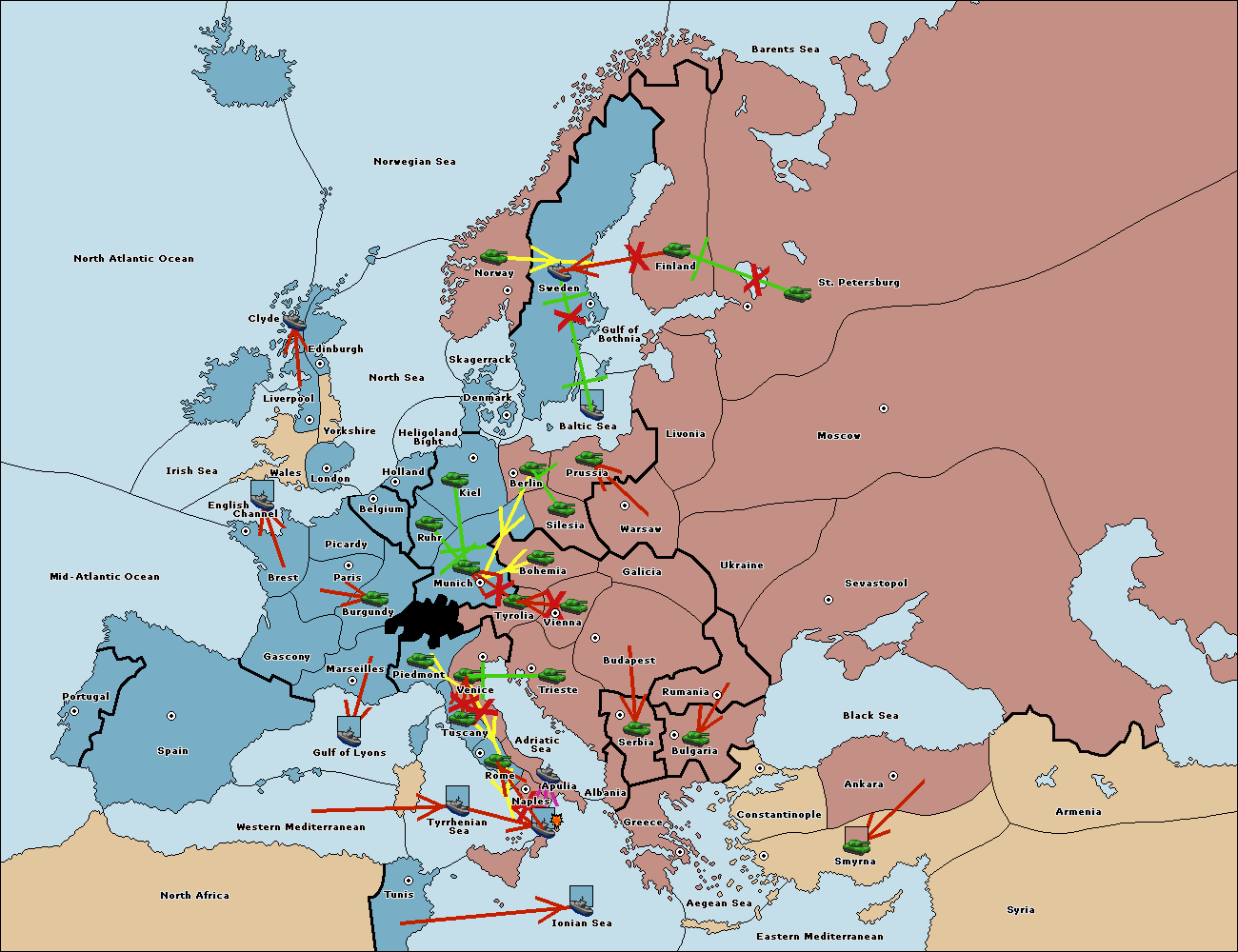 The fleet at Ionian Sea support move to Tyrrhenian Sea from Rome.