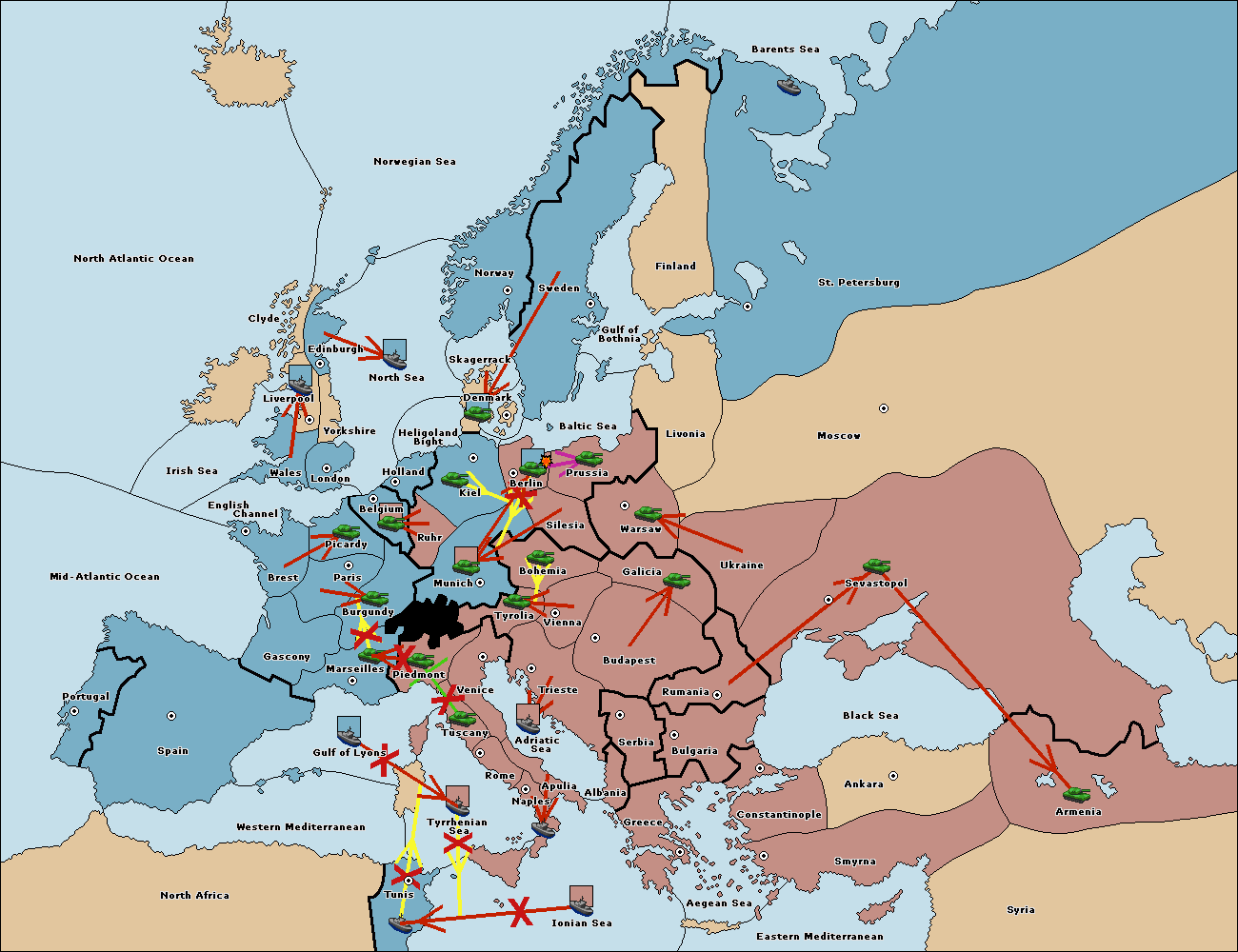 The fleet at Gulf of Lyons move to Tyrrhenian Sea.