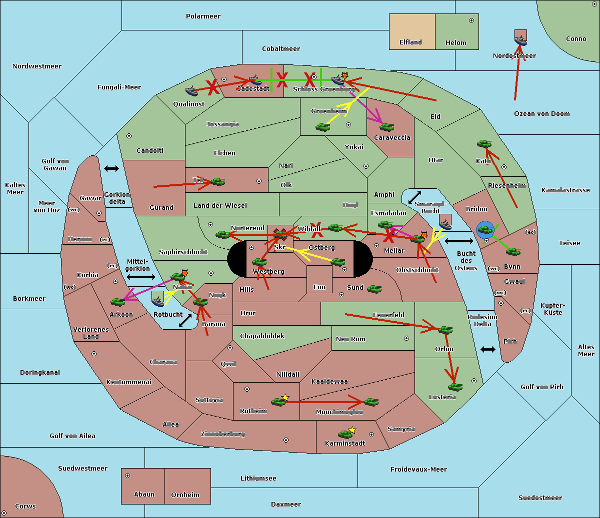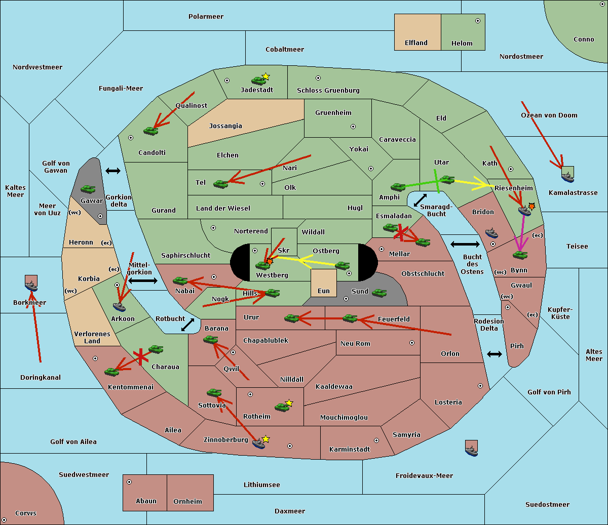 The fleet at Schloss Gruenburg move to Ozean von Doom.