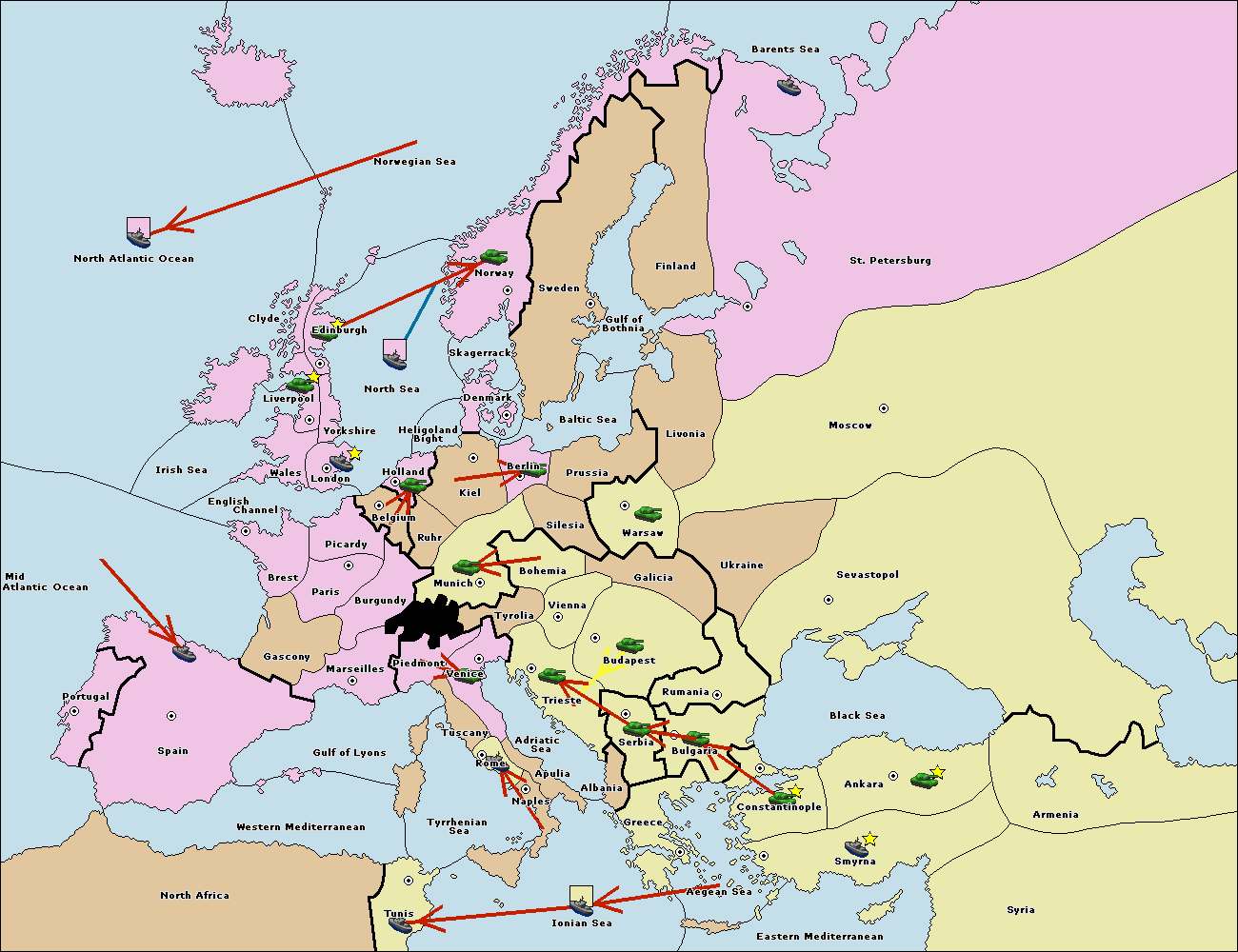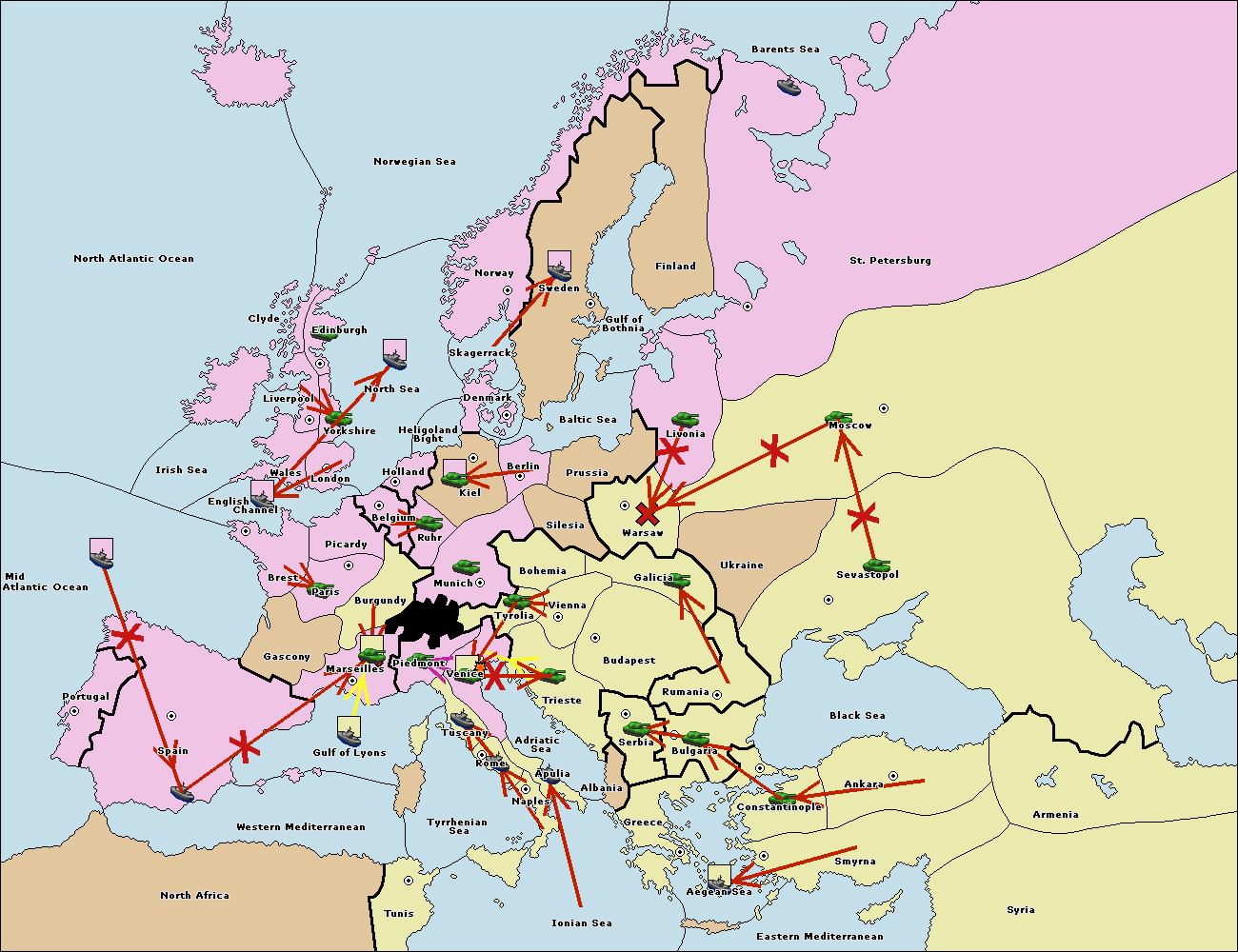 The fleet at Spain (South Coast) support move to Western Mediterranean from Mid-Atlantic Ocean.