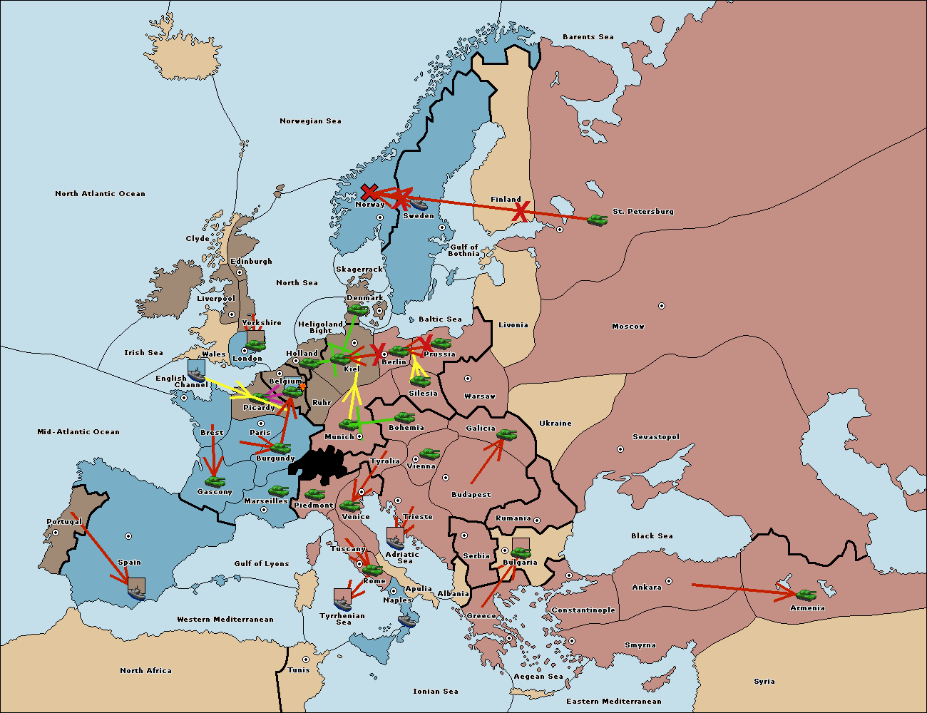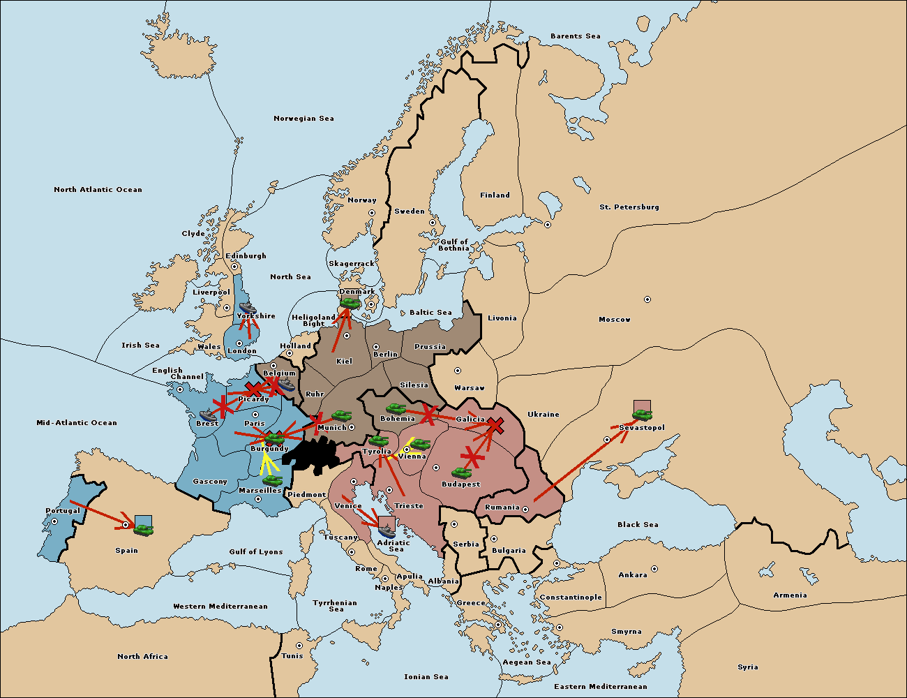 The fleet at Mid-Atlantic Ocean move to Western Mediterranean.